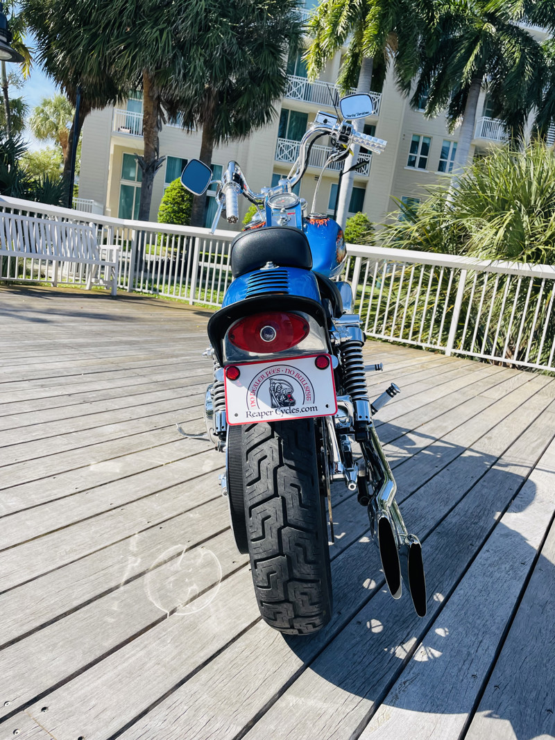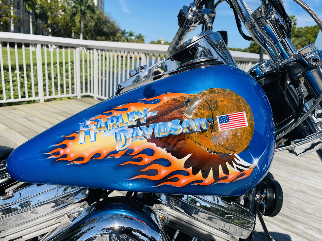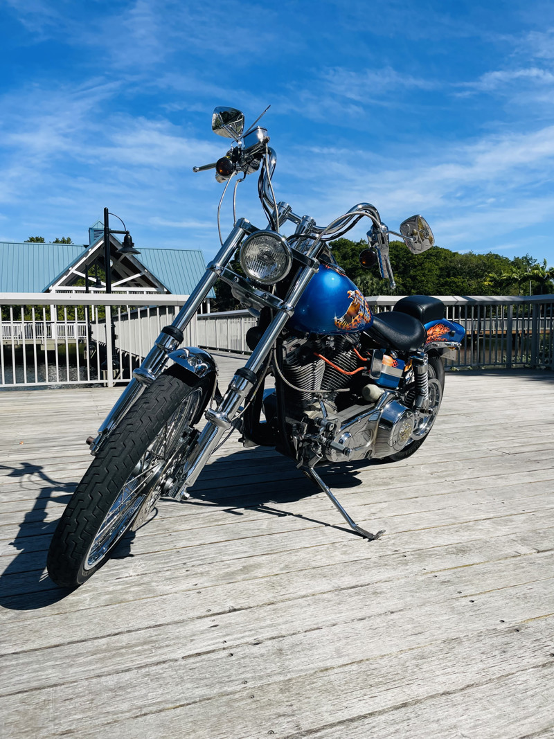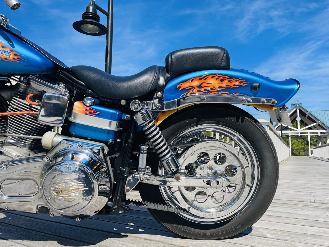 This classic bike has it all. The unique old-school look and feel of the Harleys post WWII and the brand new engine technology of the EVO motor, arguably the best motor Harley has produced to date. The blend of old and new makes this now classic Wide Glide an exceptional find. Custom painted the bike still shows exceptional on the tins with the tank having two dents on the right side. One if covered almost expertly by a decal that blends into the custom paint job and disguises the dent the other is barely visible unless you look for it. Pointed out in the Walk-Around-Video on our website.