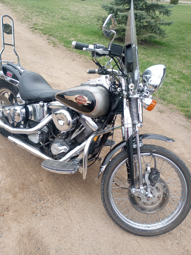 $4500 firm. Harley Davidson Softail Springer FXSTS. Beautiful Rare Springer Front End. 1440cc 81.6 cubic inch engine is like brand new (engine is slightly bigger than the factory specs, engine was recently professionally rebuilt & bored out when cam and S&S carb were put in), Gray and Black. Runs perfect, Very nice condition, very clean, taken very good care of. Always kept it under a sheet in the garage. Comes with S & S carb, chrome sissy bare, chrome tool boxes on each side, chrome light assembly, chrome roll bar, chrome and black rubber forward pads, chrome Springer Front end. Recent rebuild and installed cam & rebuilt & in my pipes, windshield, real good tires,...no dents, dings or scratches very clean. Beautiful bike, looks pretty fine heading down the road, probably the only Harley Softail Springer on marketplace. It's a rare beauty they quite making the Springers 20+ years ago. So come get it while it's still here.