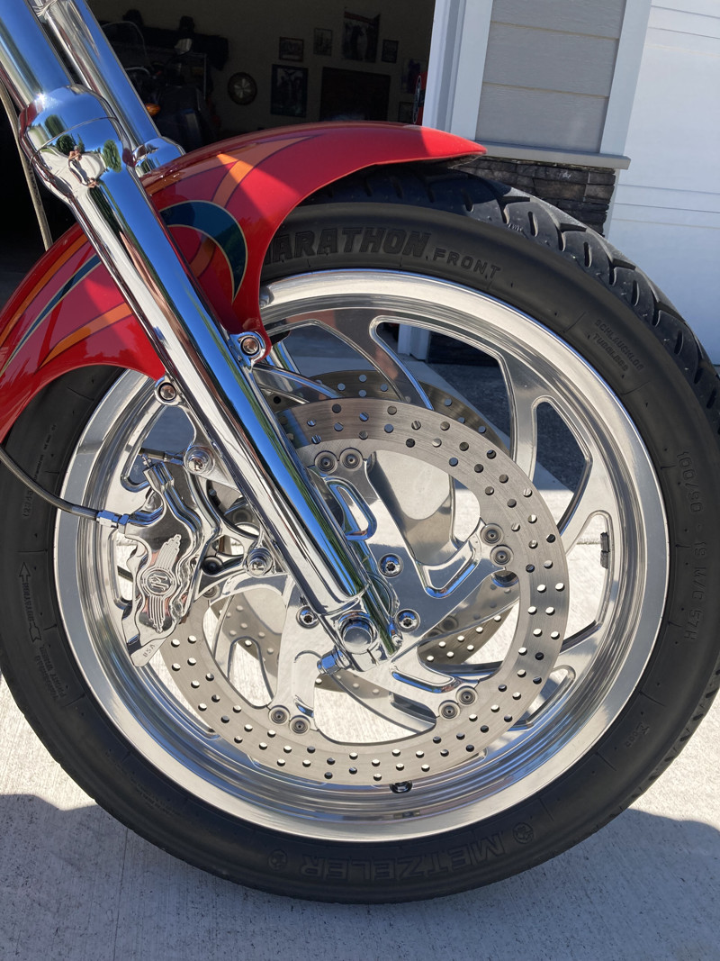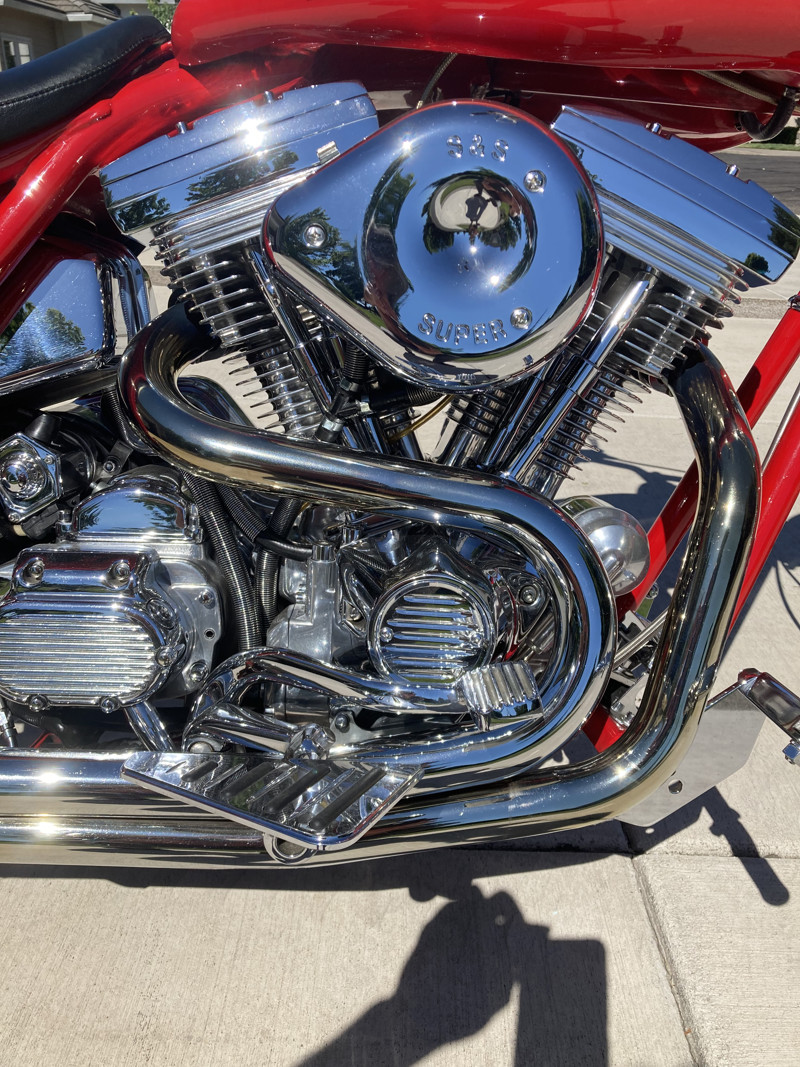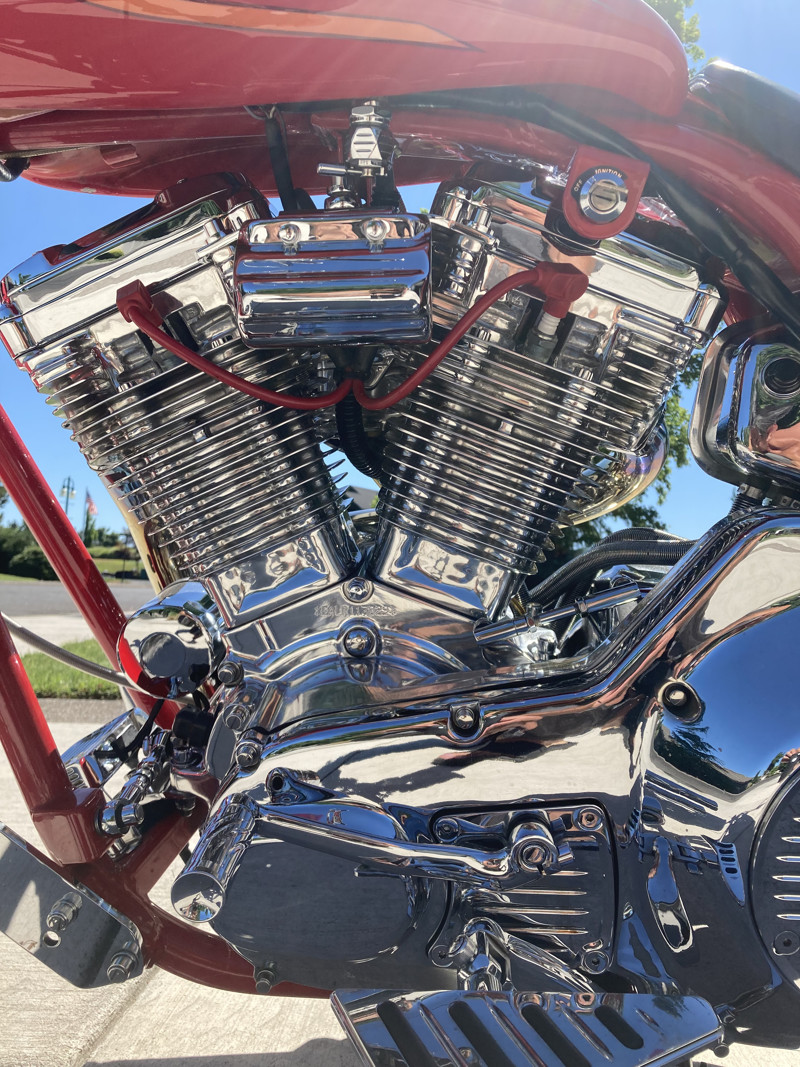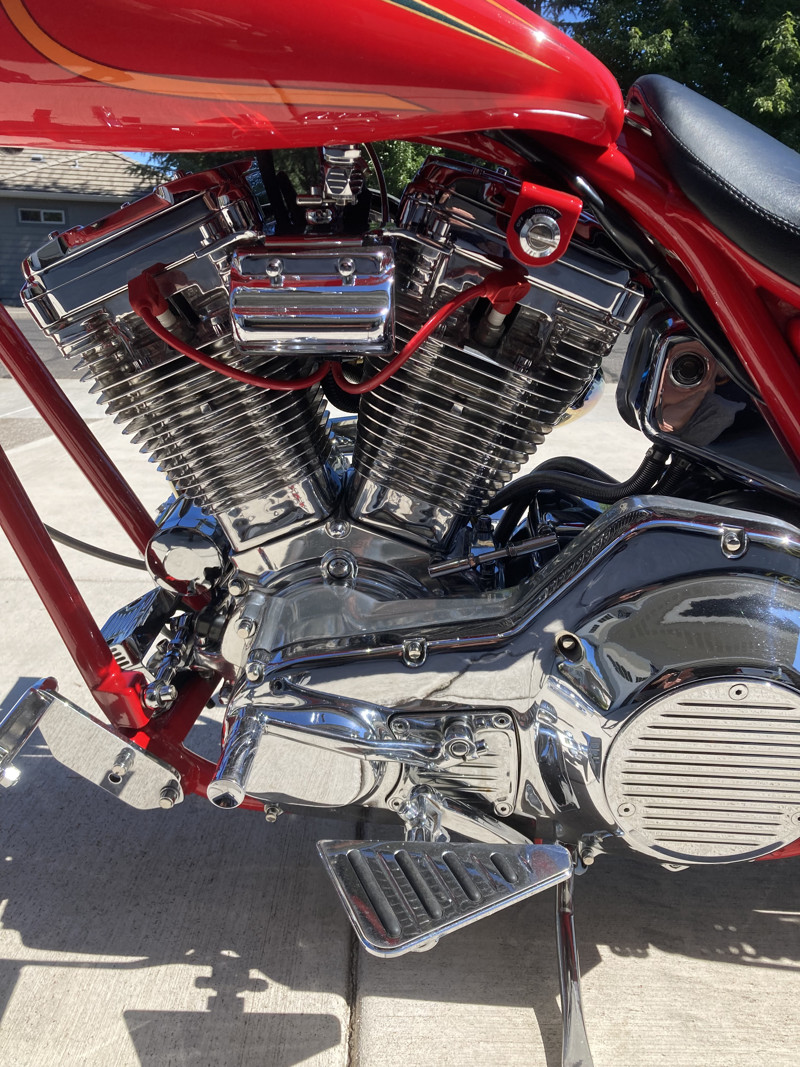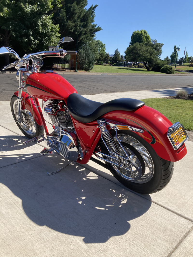 90" stroked engine, Dyna 2000 ignition. S&S carburetor. Bigger valves ported, roller rockers. Dual PM front brake discs, 13". 6 piston PM calipers. 29,661 miles rebuilt in 2004 , only 4,961miles on rebuilt engine. Call Lawrence at 707-223-0675.