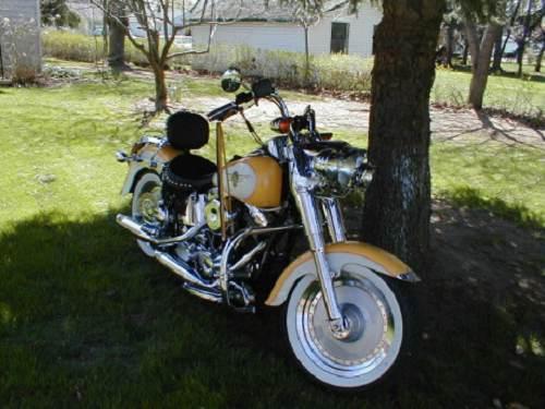 Very well Maintained & Unique Bike! Yellow & Birch White Paint From Factory, Many Extras Including: Corbin Saddle Seat W/Seat Rail, S&S Carb, Chrome Tool Boxs (2), Front End all Chrome, Buck Horn Bars, SS Braided Lines, Pingle Fuel Valve, Solid Chrome Harley Fatboy Wheels, Harley Davidson White Wall Tires, Chrome Swing Arm, Super Trap Pipes, Cammed, Fender Tips, Under Lighting, Leather Tank Pouch, Lay Down Plate Frame, Light Bar, Fringed Brake & Clutch Levers, New Battery & Battery Tender, Detachable Mounts for Sissy Bar Or Luggage Rack, Chrome Luggage Rack (Detachable), Service Manual, Extra Drive Belt, (2) Covers (Harley Davidson), AND MORE, All new Fluids Changed, Never Been Down, Has 1 small ding on rear fender (no paint broke), Rear Tire slightly worn, Runs Great, Looks Great!