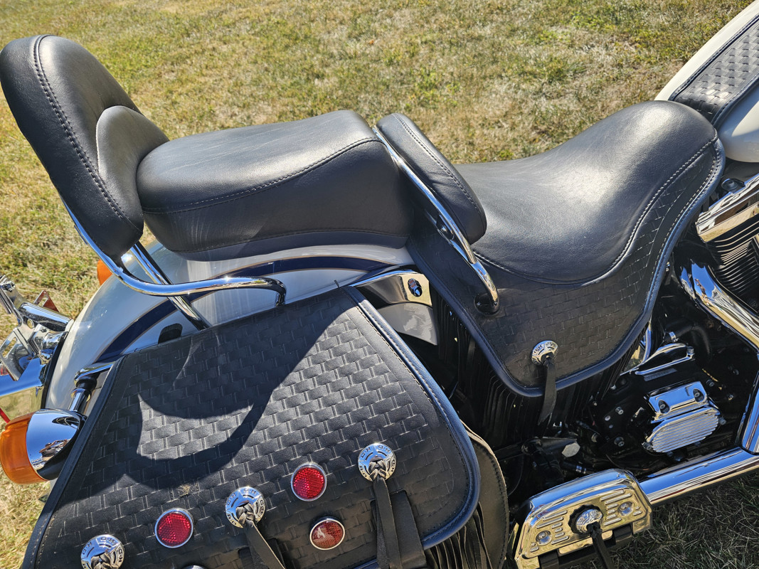 OMG!!! Come see this first year Ol Boy Springer finished off in birch white and blue. Showroom condition flawless Springer with only 12k miles. Has quick disconnect sissy bar, chrome switch housings, chrome engine package and more. Needs nothing, ready for show or go. I guarantee you will not find a nicer one anywhere. Got 6 springers, thinning out my herd.