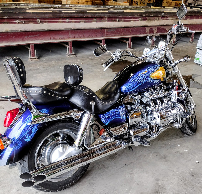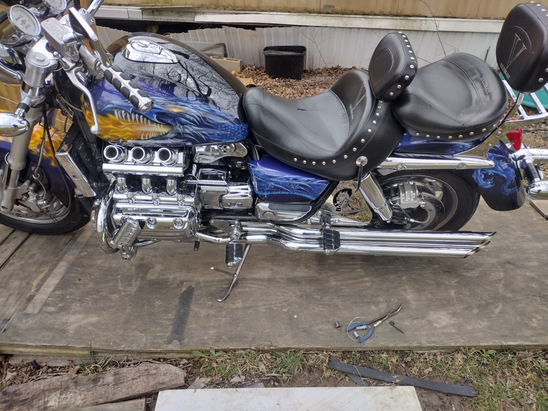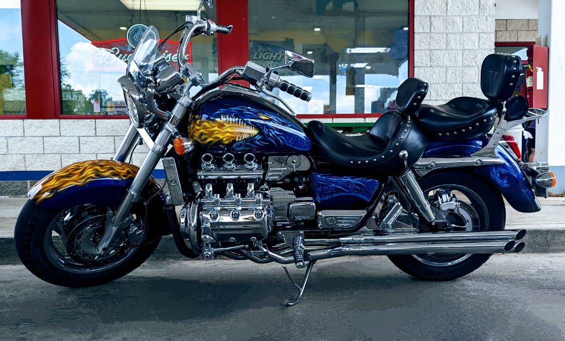 This is a full custom 1997 Honda Valkyrie 1500 and runs flawlessly! It already has pretty much every chrome accessory that could tastefully be put on the bike and the bike has been meticulously maintained since purchased new back in 97', and that meticulous maintenance shows in the overall state of the bike despite its 26 years old age. It has the cobra 6 into 6 drag pipes with the baffles removed so it sounds INCREDIBLE! Upon having the aftermarket exhaust installed the bike was put on the dyno and re-tuned/re-jetted to accommodate the aftermarket exhaust. It has a complete air horn system with hidden air compressor wired into the stock horn button. Has kuryaken grips (with throttle boss for comfort as well as aftermarket throttle lock mechanism for "cruise control") as well as kuryaken foot pegs for driver/passenger as well as highway pegs. Chromed OEM rims with Avon Venom tires that have roughly 50%-60% tread life left. Under the seat is the NOLOGY high performance ignition amplifying system paired with high performance spark plugs as well as the NOLOGY high performance plug wires. For night time visibility and appeal the bike has a complete purple LED system wired to hidden toggle switch which at night looks amazing! I'm sure I'm forgetting some things because there is just so much to list about the bike! This is a true 1 of 1 motorcycle and I can't take it anywhere without a handful of people taking pictures of the bike as I'm walking out of the store/restaurant. In all my years I've never seen/experienced a bike like this one and likely won't ever see/experience another that remotely compares to this beautiful monstrosity!