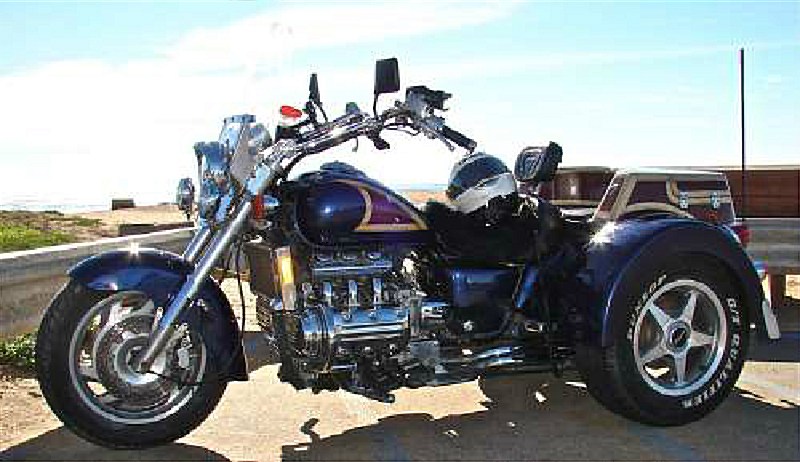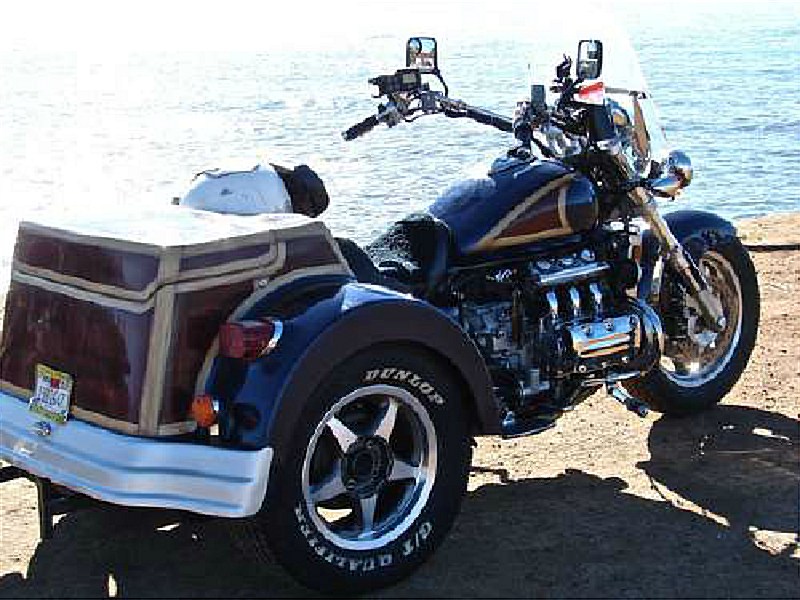 1998 Honda Valkyrie trike (Lehman rear.) 6 cylindar, 1500cc, triple tree rake, CB radio & antenna, custom seat with backrest, custom paint job, throttle lock, automatic signal cancel, damper bar, fog lights, heated gear outlet and control, full cover, trailer hitch, always garaged -