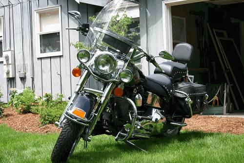 can be seen in NH or Massachusetts,low miles, spotless, chrome forks,windshield bag,tear drop mirrors,passenger foot board kit, foot board inserts, fender skirt kit, chrome fender rail front and rear, engine guard kit, rear dresser bar, chrome luggage rack,fat boy handle bars on it plus original handle bars, screamin eagle pipes, footpegs,white walls