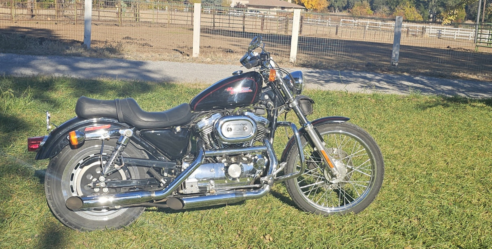 Black Sportster 1200 screaming eagle custom. Runs great original owner garage kept. Windshield saddle bags included