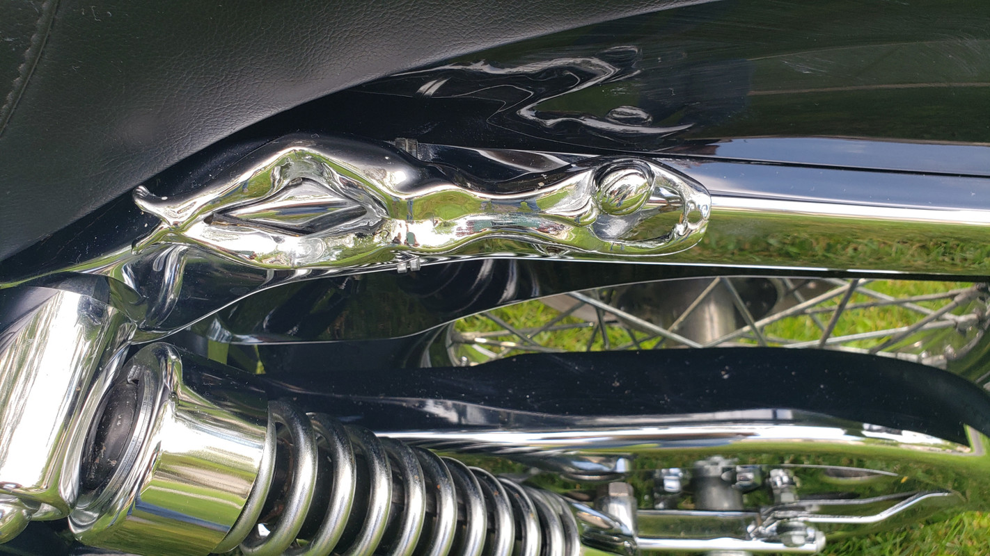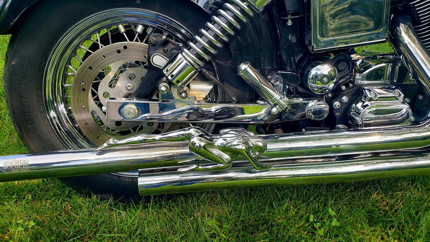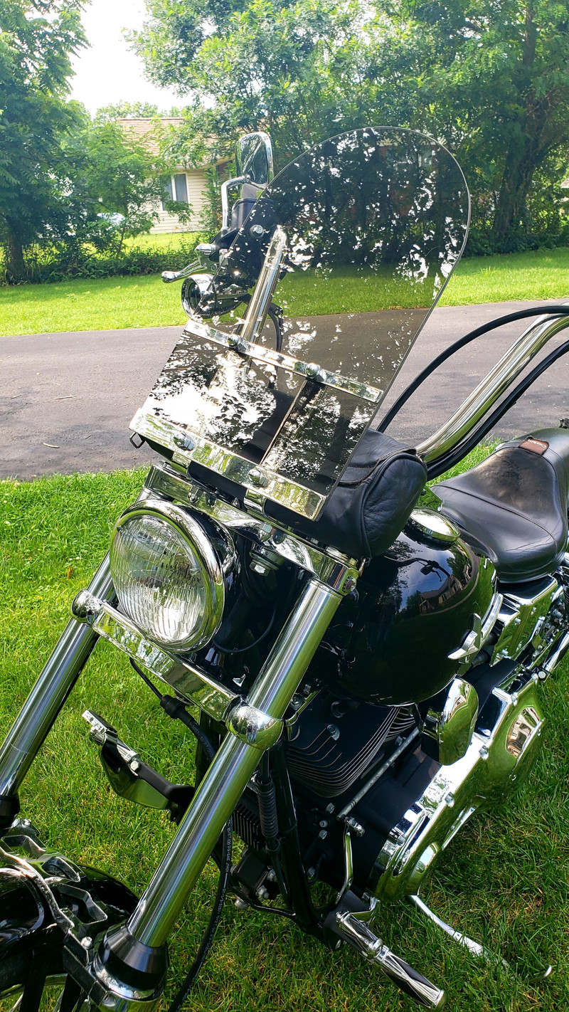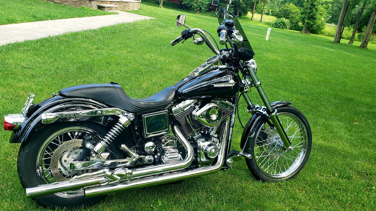 Custom Harley Davidson Wide Glide from York Factory designed for Harley employee. Lowered to 27" seat height and beautifully chromed. Custom factory paint with 1964 FLH tank emblem. S&S Carb with Hooker straight pipes. Multiple chrome upgrades include female nudes as shown. Runs and rides like new; only 6208 miles.