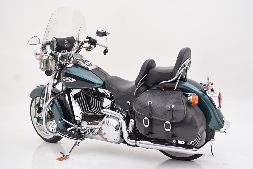 Experience classic Harley-Davidson heritage with this 2001 Harley-Davidson® FLSTSI, finished in a timeless Suede Green / Vivid Black two-tone paint set that perfectly complements its nostalgic Softail styling. With 41,081 miles, this bike has been well enjoyed and enhanced with several tasteful upgrades that add both comfort and style.This FLSTSI features an upgraded exhaust system that delivers the deep, unmistakable Harley rumble, along with upgraded grips for improved rider comfort and control. A windshield adds wind protection for longer rides, while the rider and passenger backrest provide added support to keep both you and your passenger comfortable on the open road. The look is finished off nicely with chrome mirrors that add just the right amount of shine.If you're looking for a dependable, classic Softail with vintage character and practical upgrades, this Heritage Springer-inspired cruiser is ready to ride.Highlights include:41,081 milesSuede Green / Vivid Black paintUpgraded exhaust systemUpgraded gripsWindshieldRider & passenger backrestChrome mirrorsA true piece of Harley-Davidson history with classic styling and touring comfort—perfect for cruising Main Street or the highway.
