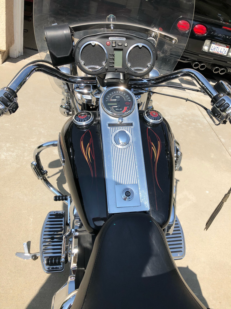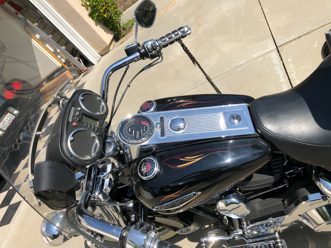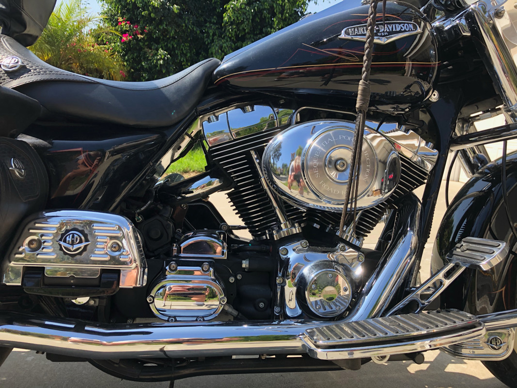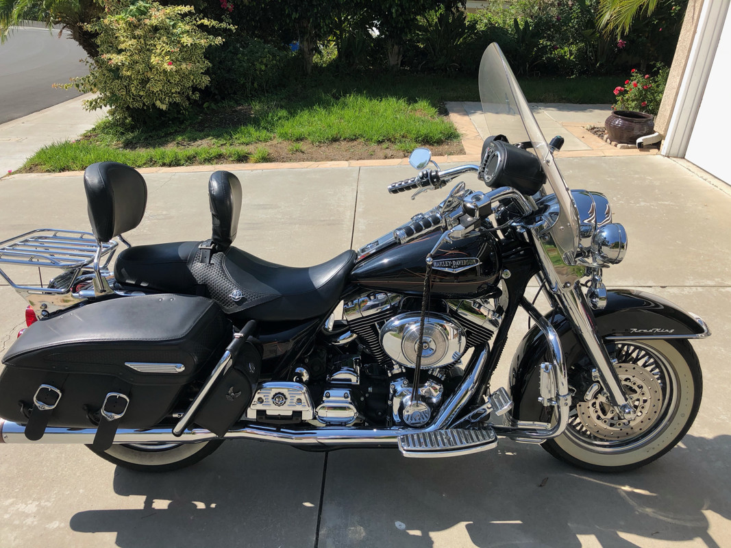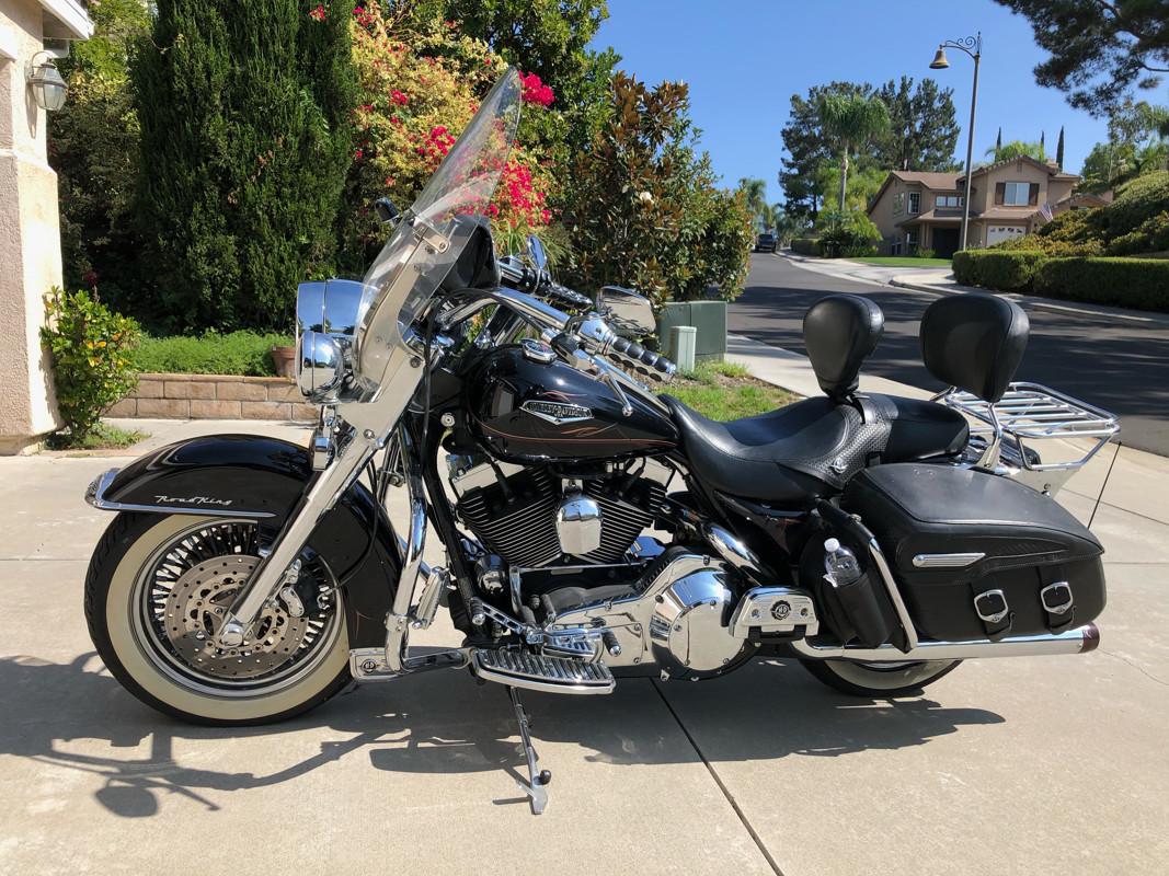 Private Seller. FLHRC 2001 Harley Davidson Road King Classic touring motorcycle. This motorcycle is a pleasure to drive on the open road. In excellent condition, runs great, everything works. Lots of extras and custom work. True dual Bub exhausts with optimal Gatling gun mufflers, cam chain tensioners replaced, high flow air filter, drive belt, adjustable pushrods, 40 spoke wheels, luggage rack, radio with USB hook up, passenger seat, helmets, chaps and gear. In excellent condition, lots of extras. 45,859 miles. Original owner with Audit VIN History Reports. Email me for more info.