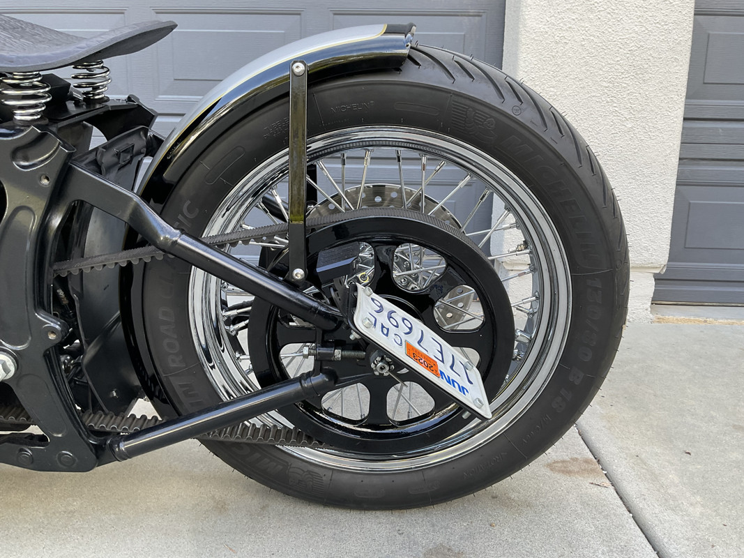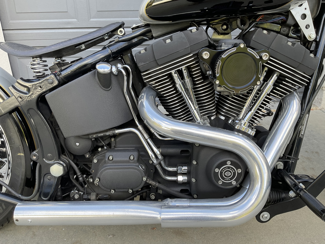 Powder coated lower fork tubes, foot controls, belt drive pulley, headlight bucket, side stand, etc