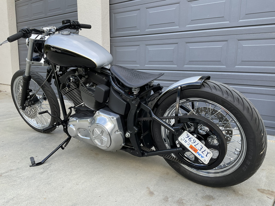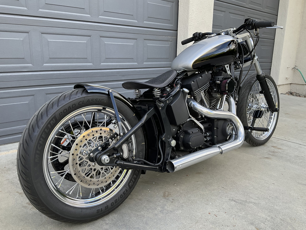 Beautiful custom paint job in silver and black with a gold pin stripe on tank and fender.