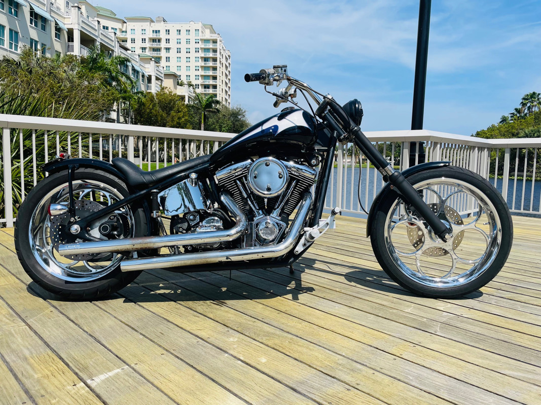 A Rev-Tech powered custom chopper that, as you can see by the pictures, needs some love and care. A perfect project or turn this into a “Rat Chopper”, old-school style. The bike runs excellent now. So mechanically there is nothing to be done. It is a fully functioning bike that was brought back to life after sitting for several years. We re-lined the tank, did a full carb rebuilt and got this bike back on the road. Now either go all the way in the “rat” department or start making things pretty again. See the walk around video on our website that shows the condition in detail.