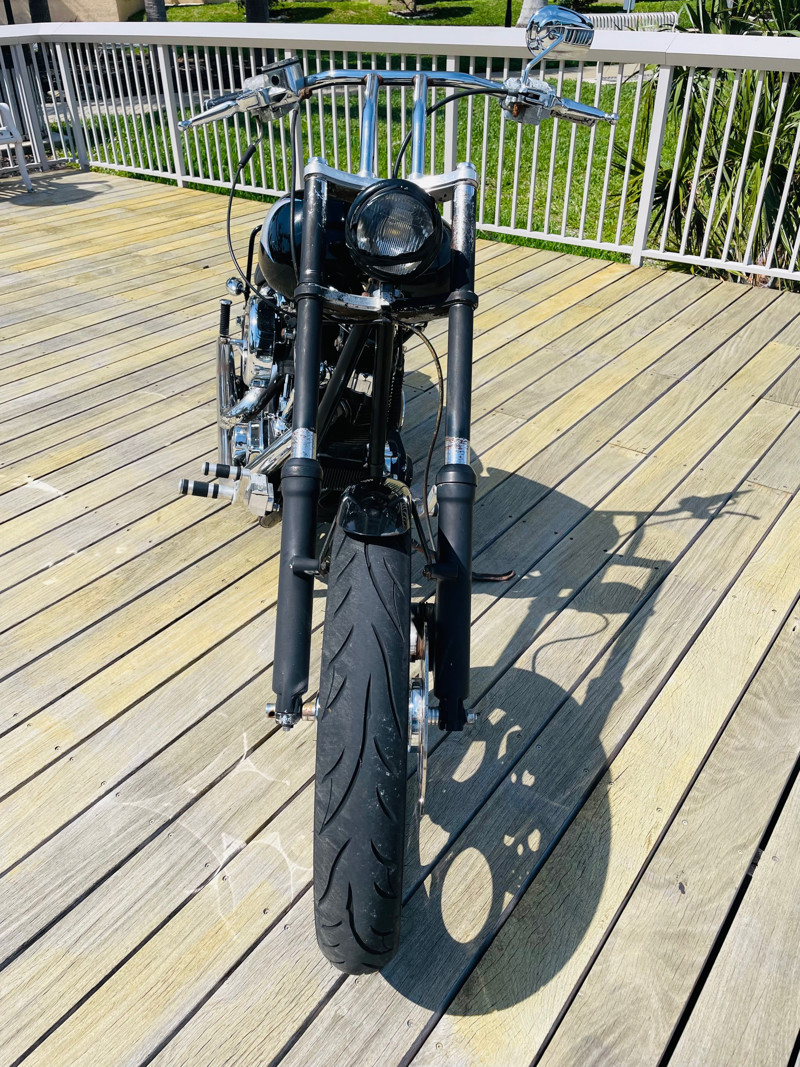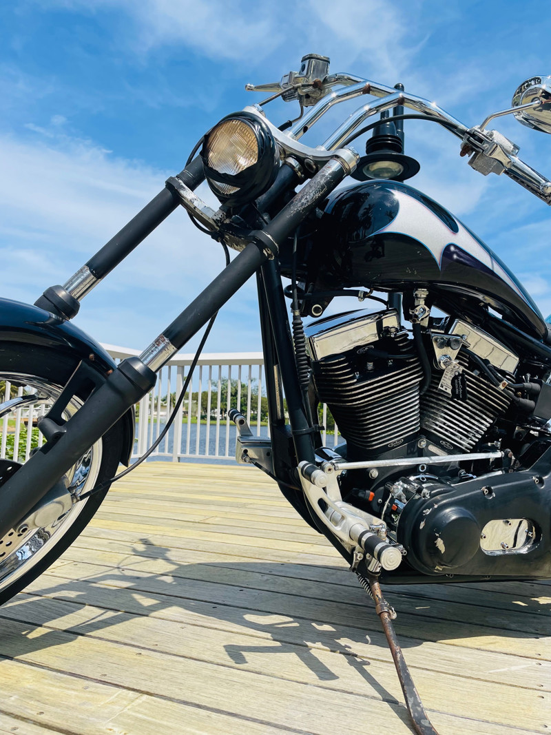 Surprisingly this bike is a very easy handling ride and despite being a hardtail chopper it actually does not rattle your brains out. The 200 rear tire has enough meat to take a good punch instead of your spine. Handles easy over railroad tracks and turns in nicely.