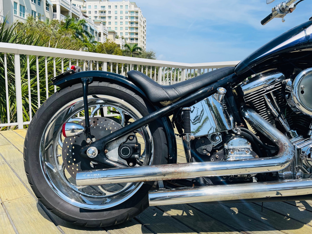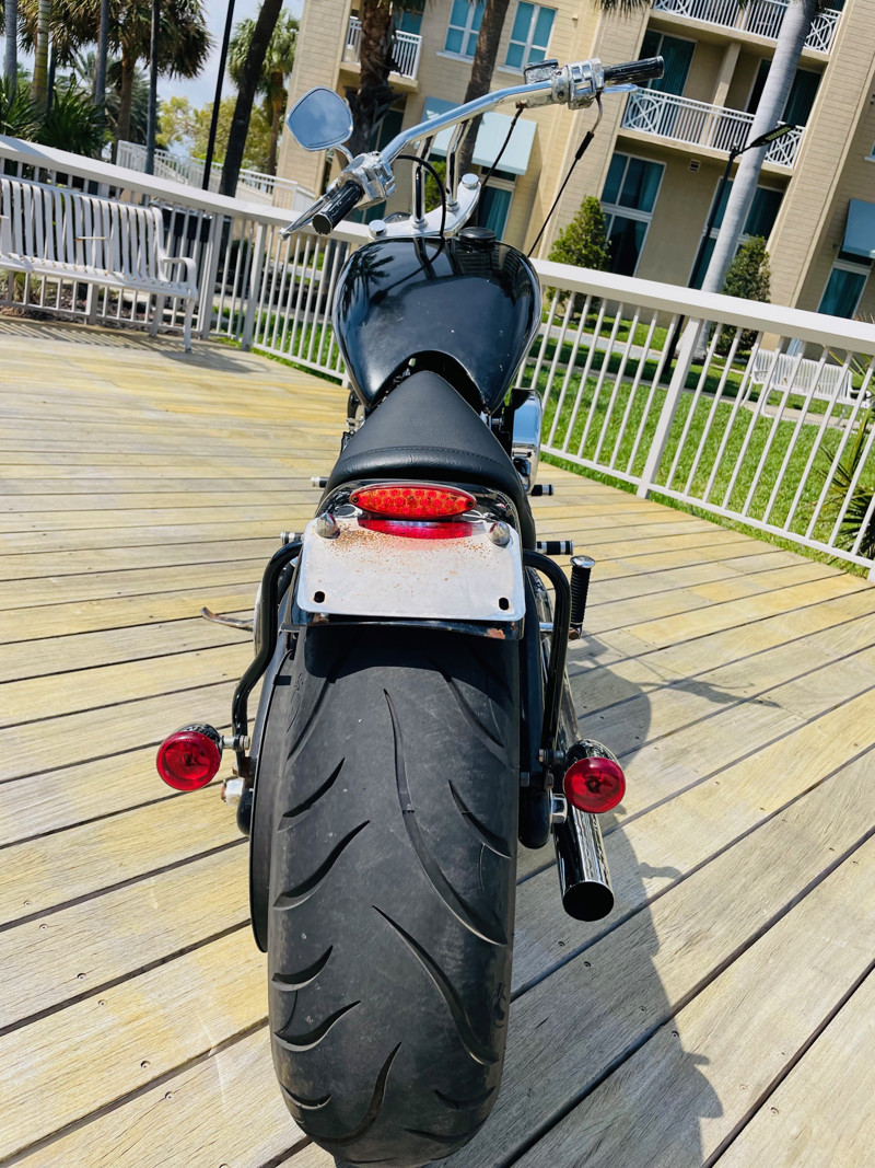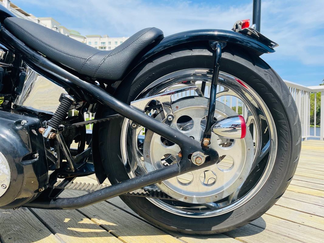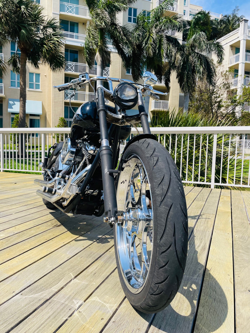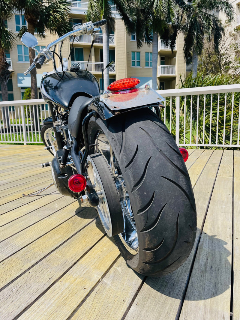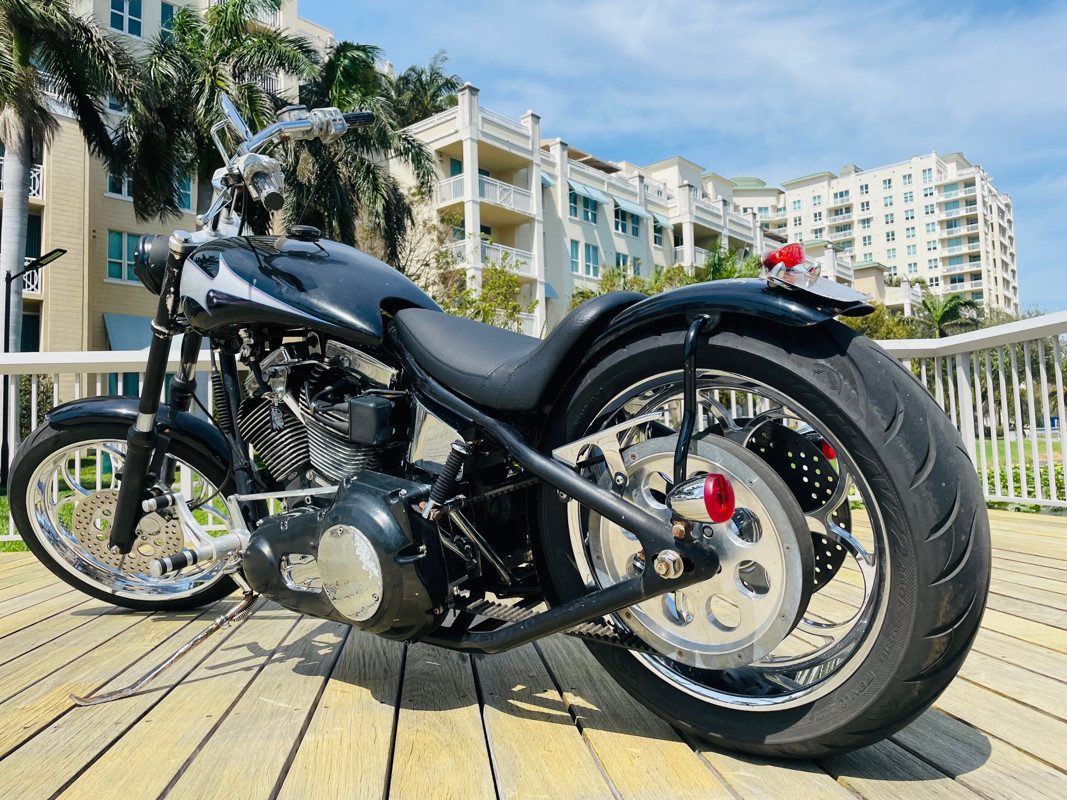 Surprisingly this bike is a very easy handling ride and despite being a hardtail chopper it actually does not rattle your brains out. The 200 rear tire has enough meat to take a good punch instead of your spine. Handles easy over railroad tracks and turns in nicely.