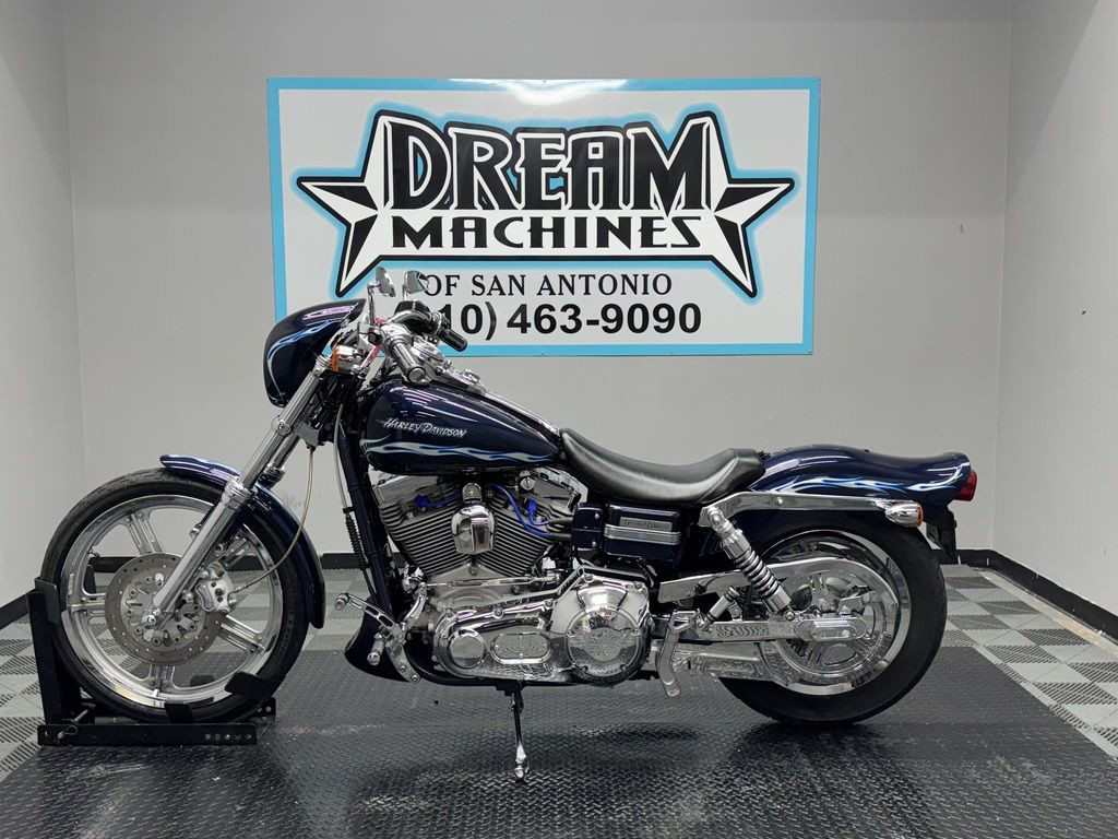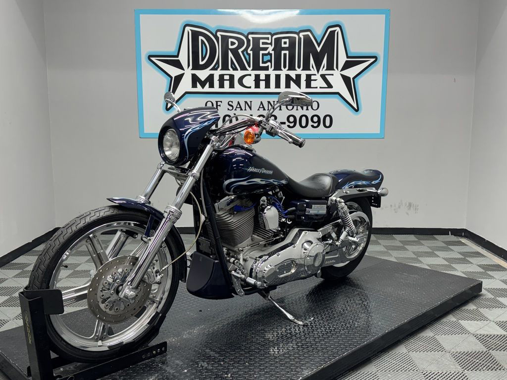 *BOOK VALUE IS $10,452 SHIPPING, LEASING, FINANCING AND EXTENDED WARRANTY MAY BE AVAILABLE! YOU ARE LOOKING AT A 2002 HARLEY DAVIDSON SCREAMIN' EAGLE CVO DYNA WIDE GLIDE 3 (FXDWG3) WITH 54,311 MILES ON IT. IT IS NAVY BLUE PEARL AND SILVER METALLIC FLAMES IN COLOR AND POWERED BY A 1450CC (88") CARBURETED ENGINE AND 5 SPEED TRANSMISSION. THE BIKE COMES WITH 2 KEYS. THERE ARE A FEW EXTRAS ON THE BIKE WHICH INCLUDE SAMSON EXHAUST ($649.95), SCREAMIN' EAGLE AIR CLEANER ($299.95), LEPERA SOLO SEAT ($297.95). THERE ARE NO DENTS OR DINGS THAT I CAN FIND. THERE ARE SMALL SCRATCHES ON THE FRONT FENDER, HEADLIGHT VISOR, TANK, AND REAR FENDER. THE CHROME AND ALUMINUM HAVE FLAKING ON THE FORK LOWRES, REAR SHOCKS, AND BELT SPROCKET. THE TIRES HAVE GOOD TREAD LEFT ON THEM.