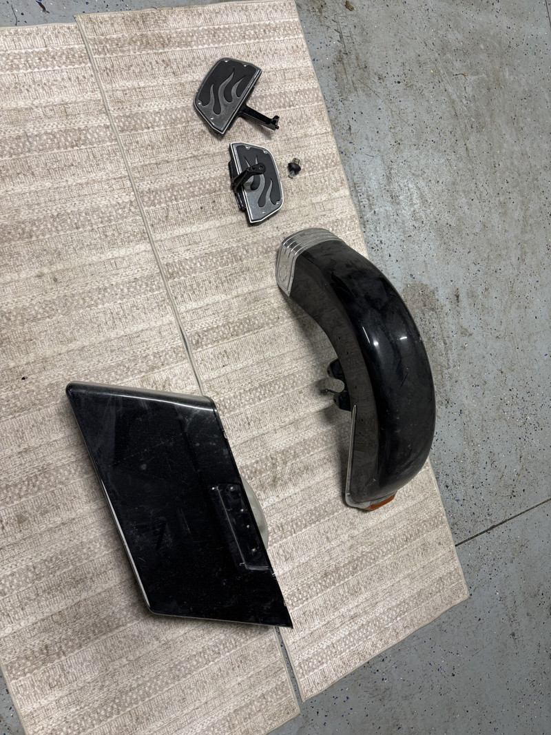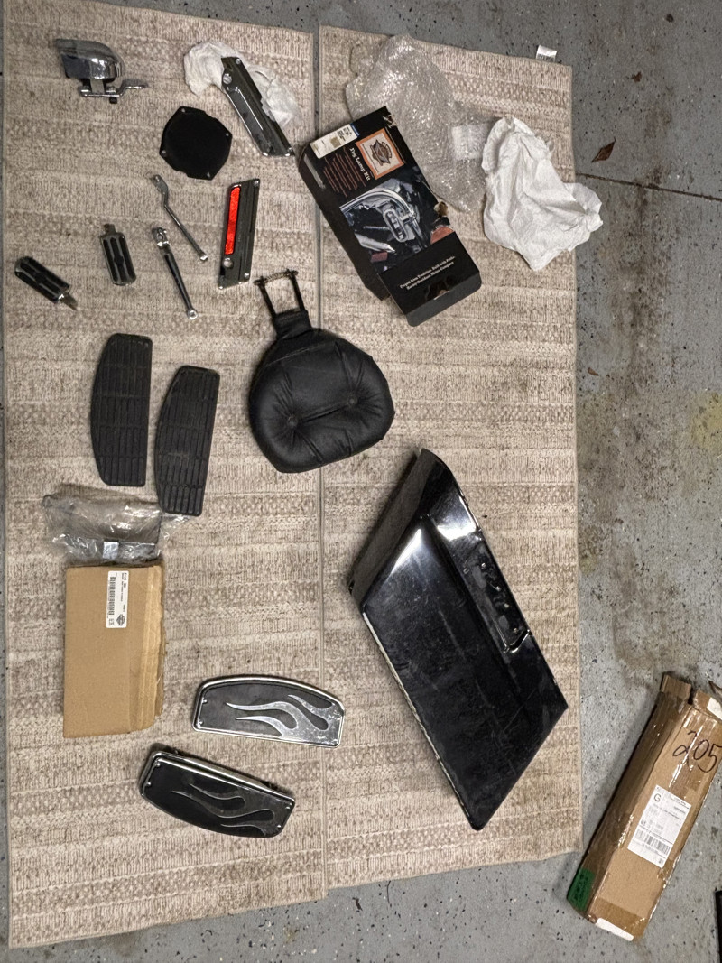 I have a 2002 Harley Davidson Electra Glide with about 27k miles. There is a dent in the tank, and front fender needs to be painted. It does come with original fender which appears to be in good condition. Everything listed in the photos comes with it. I believe there is a few smaller items not pictured that will be thrown in if purchased. This is not a part out. Buy everything or nothing.