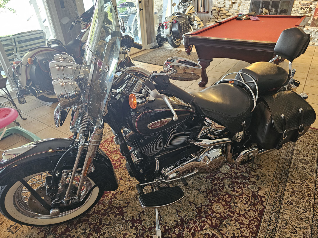 Here's your chance to own a beautiful Springer without breaking the bank. Finished off in vivid black this bike looks like it's been kept in someone's living room. I do keep it in my mancave, LOL. Flawless bike just serviced and equipped with HD engraved wide whites, factory security, sissy bar, quick remove windshield, Screamin Eagle fishtails, floor boards and more. Fuel injected Twin Cam 88 . Looks, runs and rides like new. You will not find another one this nice for this kind of money. Not a destress sale, low ballers don't waste your time. I had 9 springers , down to 5 and thinning out the herd.