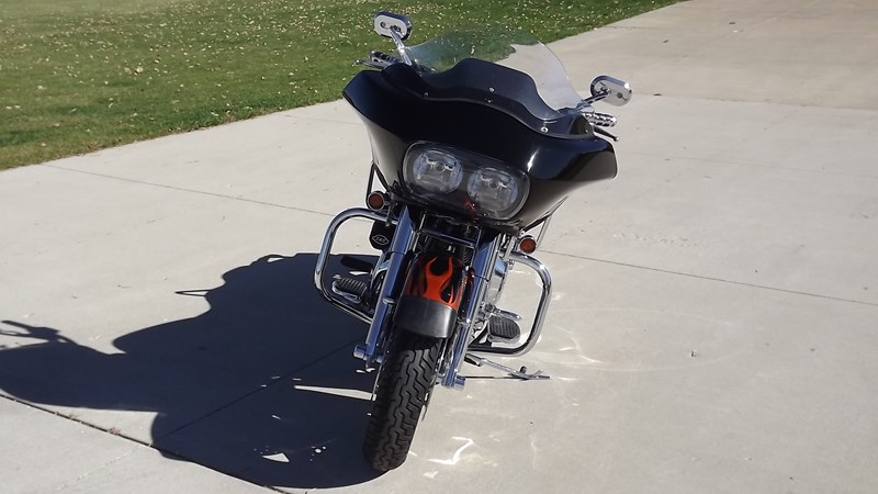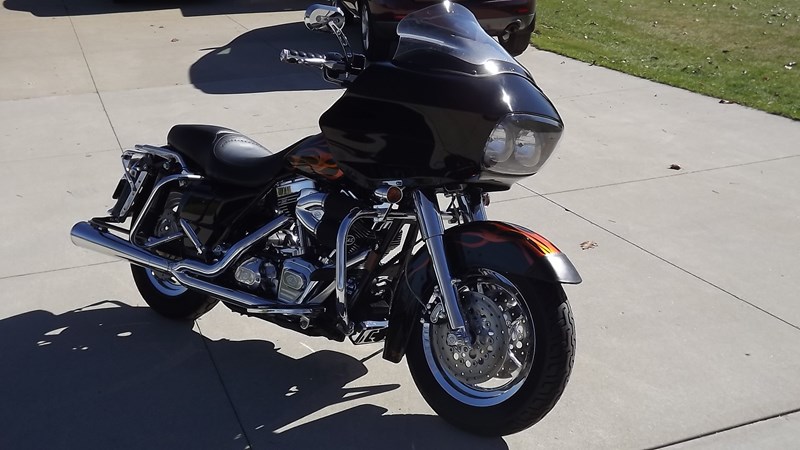 Road Glide with S&S 124" engine and S&S 6 speed trans with 2200 miles on the drive train. Comes with bike lift, 3 extra windshields, bike cover, detachable tour pack, passenger and rider backrest. Chrome Thunderstar wheels, inner primary, front forks, brake rotors, belt guard and more. Silver face gauges, custom paint with a leather guard on front edge of fender to avoid stone chips. Everything works including the cruise control. Pingle fuel valve, Kuryakyn grips, Ness foot pegs and LED lights,(not headlights), I don't have the opportunities to ride much any more and this bike deserves to be ridden. Call Keith with any questions @ 262 707-4187 between 0700 and 2200. Please do not text