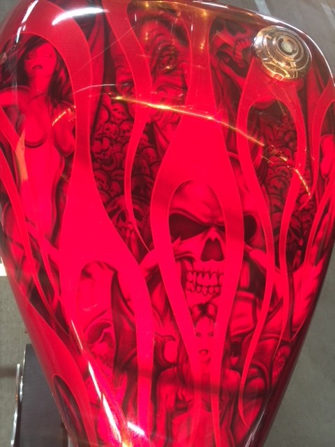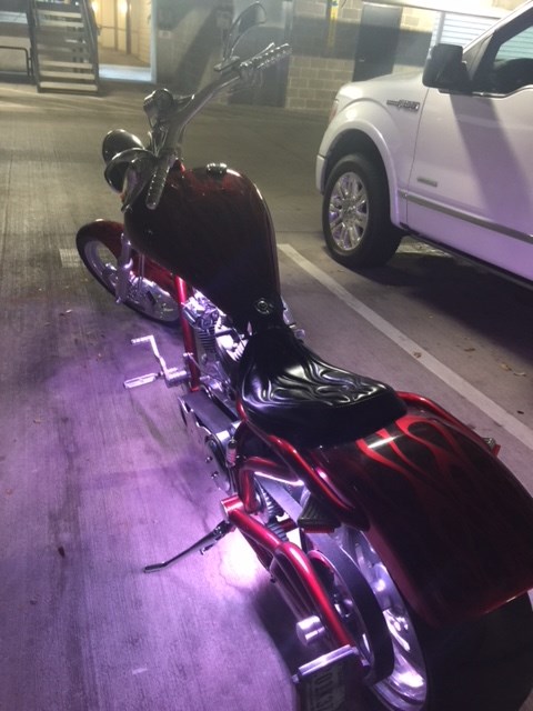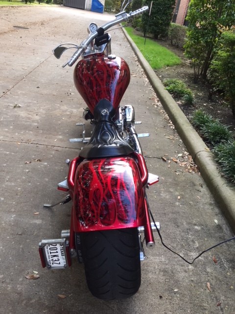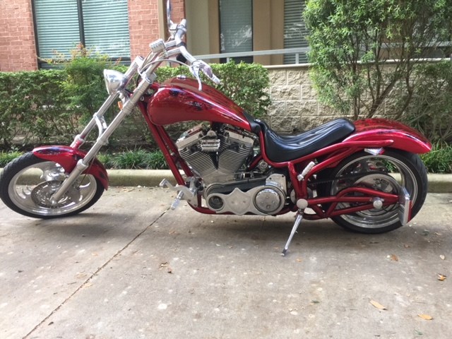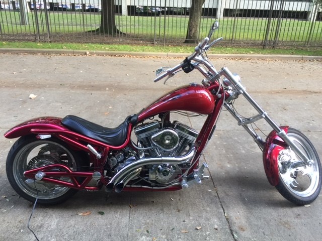 2003 Bourget Fat Daddy CUSTOM CHOPPER, FAST & LOUD! 250 Tire, Insane Chrome flame wheels and flame theme throughout. Custom candy red, ghost flame, skull and nude women paint job by Deano. Not another one like it. Only 500 miles on this brand-new engine! S&S Performance 124 cubic inch (2,032cc) high-compression installed in 2017; fire breathing, head-turning custom ride that is sure to be the envy of all your friends. Comfortable soft tail, handle-bar position and seat height make this a great bike to cruise around town on Friday and Saturday nights. TRANSMISSION 5 Speed Softail STD Brand Polished PRIMARY DRIVE Primo Brute Open Belt Drive Clutch Kit, Clutch Hub & Pully Polished, LED custom lights, new battery, new throttle cable, new belts, new voltage regulator. Chrome Shortie Exhaust with heat shields, rear tire is a 250/40 R18 which is about 9.8" wide on an 18" rim. 6 gallon gas tank, Call for details; no joy rides without cash in hand.