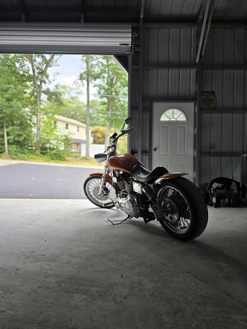 Rebuilt and hopped up motor & trans with all of the s&s goodies 110 kit ,585 cams , s&s upgraded oil pump+plate ,push rods ,s&s carb & intake/air breather ,inginition control module and rotating assembly, vance & hines exhaust ,HD performance crank and headwork was done 11-1 compression high torque starter etc. Raked front end with extended forks (new) digital display, custom wheels and paint all new chrome .