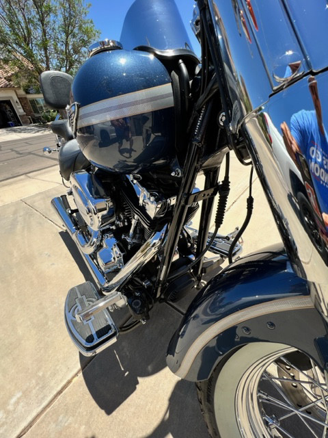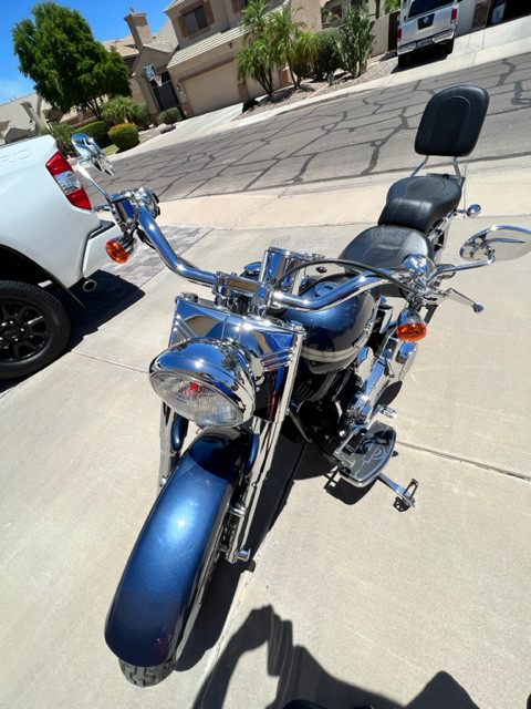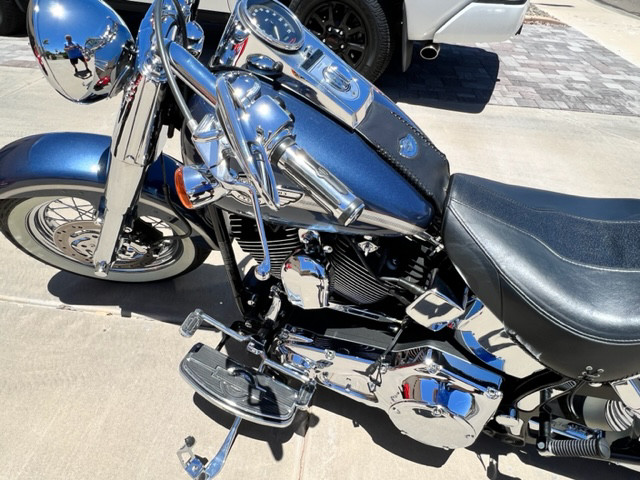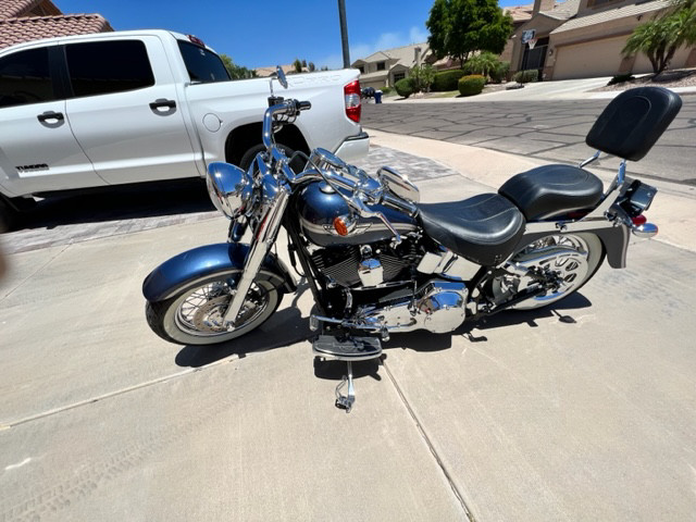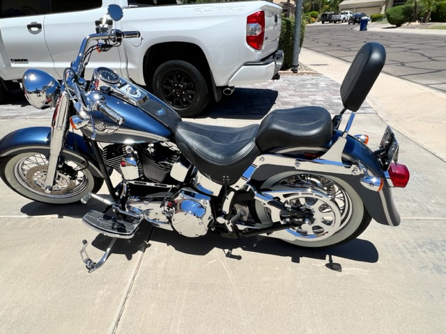 100 Year Anniversary Fat Boy 88 Cubic Inch Carbureted Stage 2 Intake, cam and 2 into 1 Vance and Hines Exhaust. Very Clean Lots of Chrome. Chrome spoke rims with White walls, lowered. Rider Backrest, extra Low-Profile Passenger seat. 2 inch Beach Handlebars, and a set of Chrome Toppers they cover all the screws etc. very clean look adds to the Beauty of the Bike. Bike cover also, always kept in the Garage.