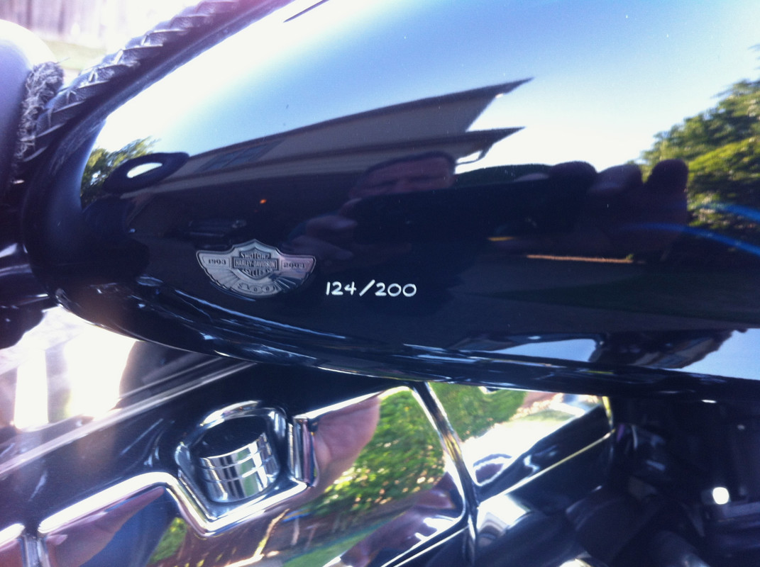 100th anniversary custom paint, 124/200 - custom wheels - screaming eagle kit, 100 hp - 6 speed transmission - hydraulic clutch - steel braided lines - chrome swing arm - heavy duty starter - heavy duty rear shock rest - k back - heavy duty oil cooler - kuryakyn highway pegs - vance & Hines exhaust - detachable saddle bags - detachable windshield - Corbin seat with detachable back rest - garage kept - one owner -