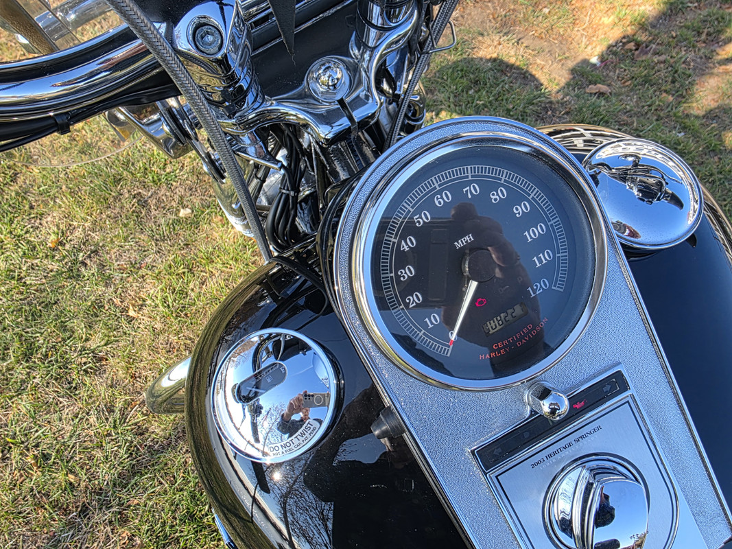 Here's the one you've been looking for. This is the finest springer being sold from my collection. Bike is flawless and runs like new. Always kept in climate controlled environment . 8K mile bike finished off in vivid black. Fuel injected model with quick remove windshield, quick remove sissy bar, Screamin Eagle slip ons, chrome switch housings, rear boards and more. Tires have less that 20 miles on them. My silver 03 I sold with 1200 miles was not as clean as this one. Last year for the Heritage Springer and Harley's 100th Anniversary. Bike is not a destress sale so low ballers don't bother. Have 3 other 97s I'm selling also.