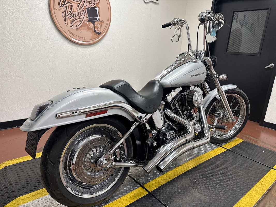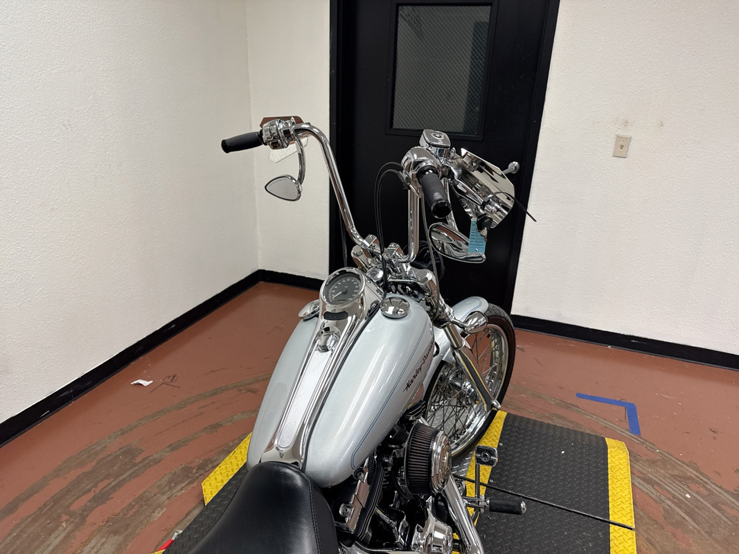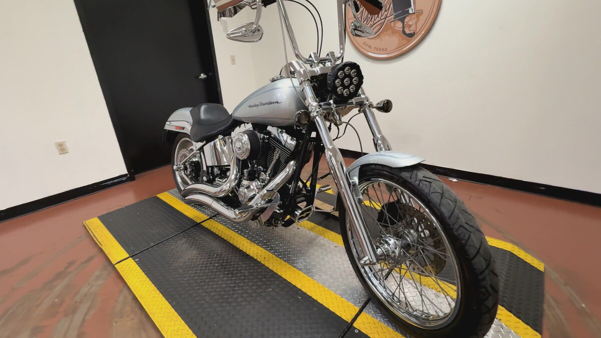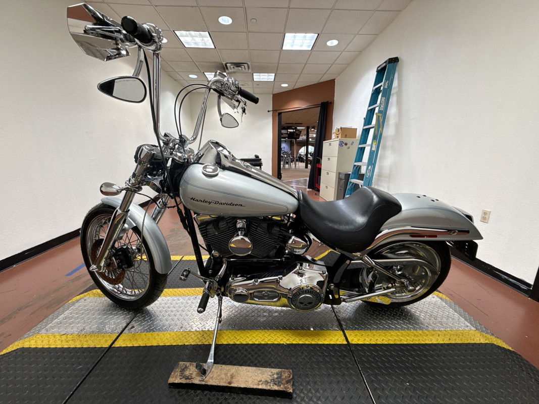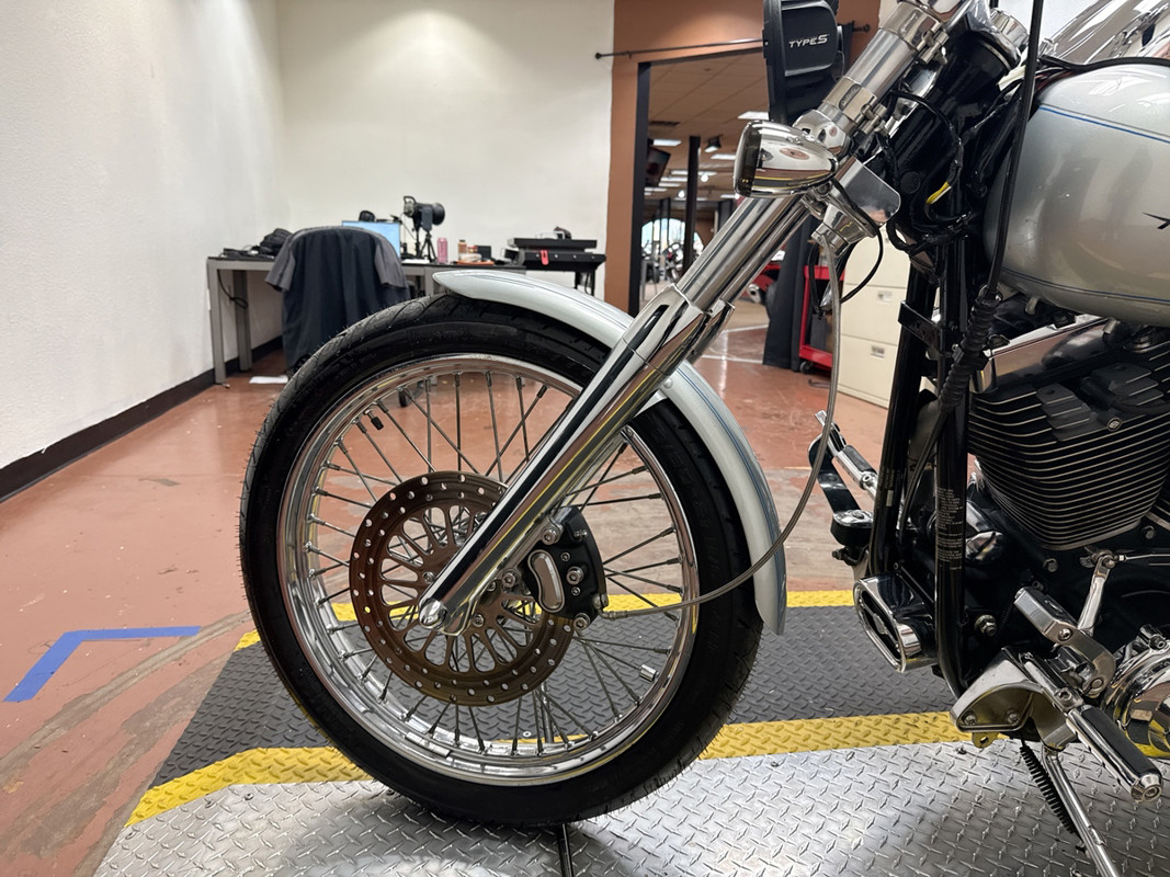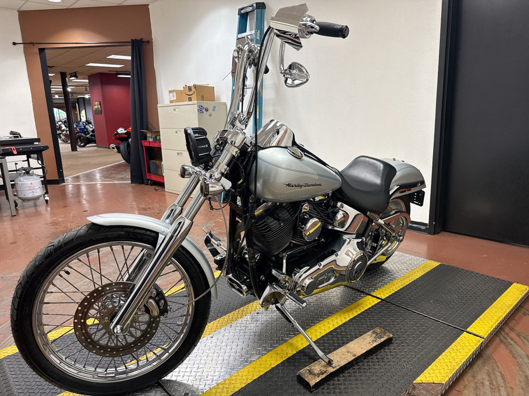 The Softail Deuce's exterior gleams in a striking silver finish, perfectly complementing its sleek lines and bold design. This used motorcycle stands out with its unmistakable Harley-Davidson aura, embodying the timeless American motorcycle spirit.