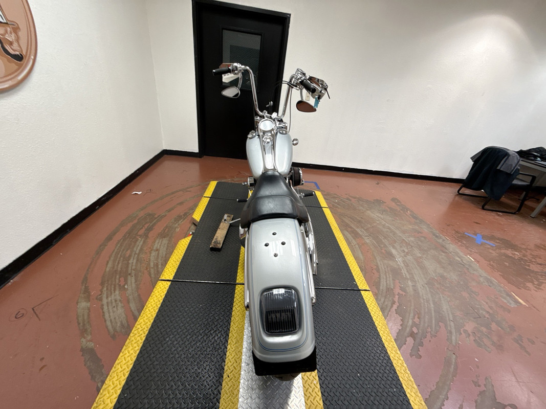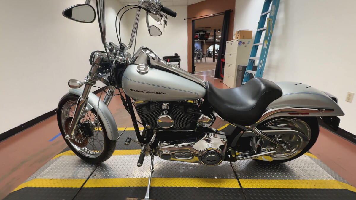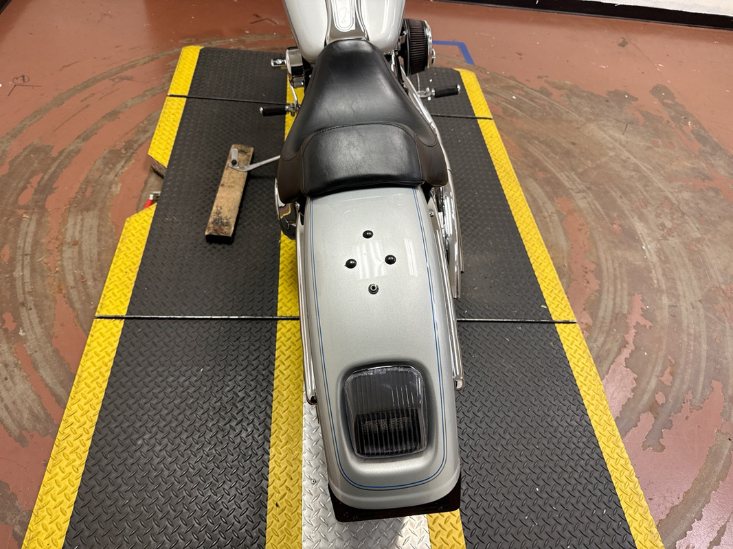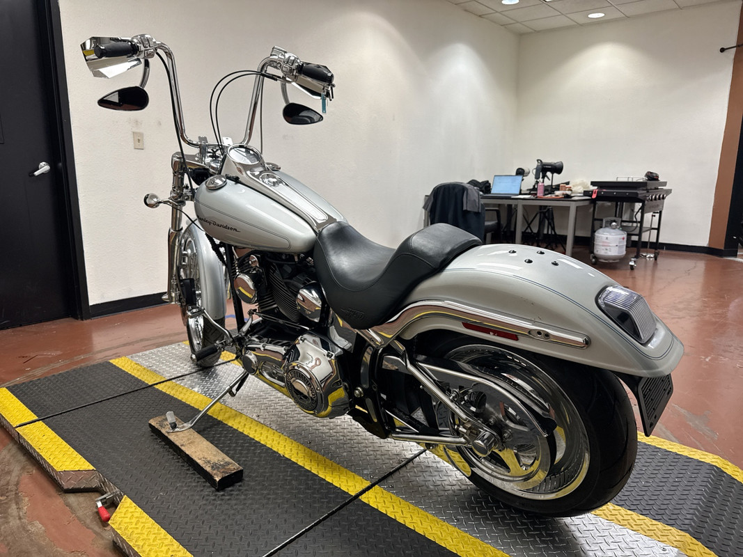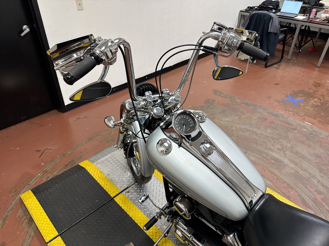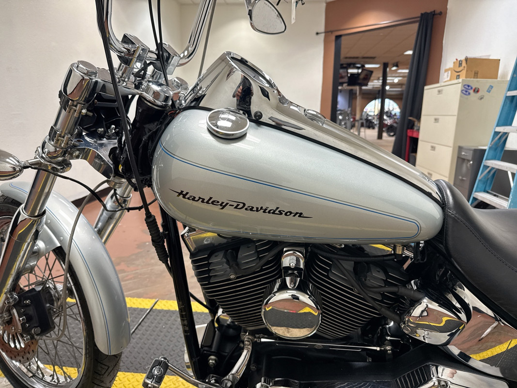 The Softail Deuce's exterior gleams in a striking silver finish, perfectly complementing its sleek lines and bold design. This used motorcycle stands out with its unmistakable Harley-Davidson aura, embodying the timeless American motorcycle spirit.