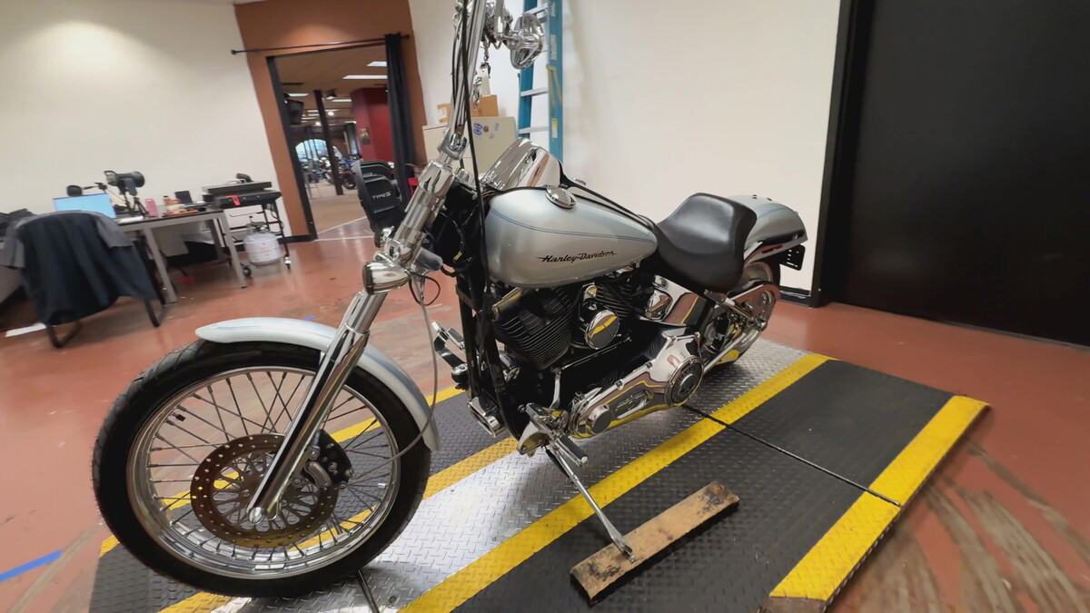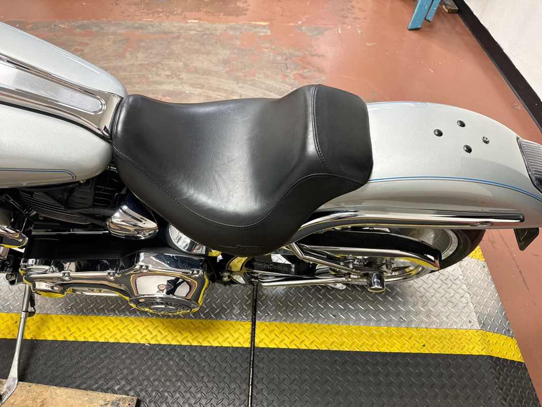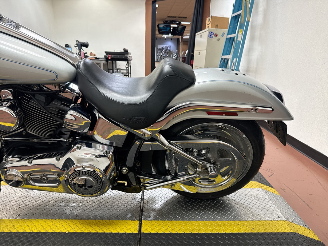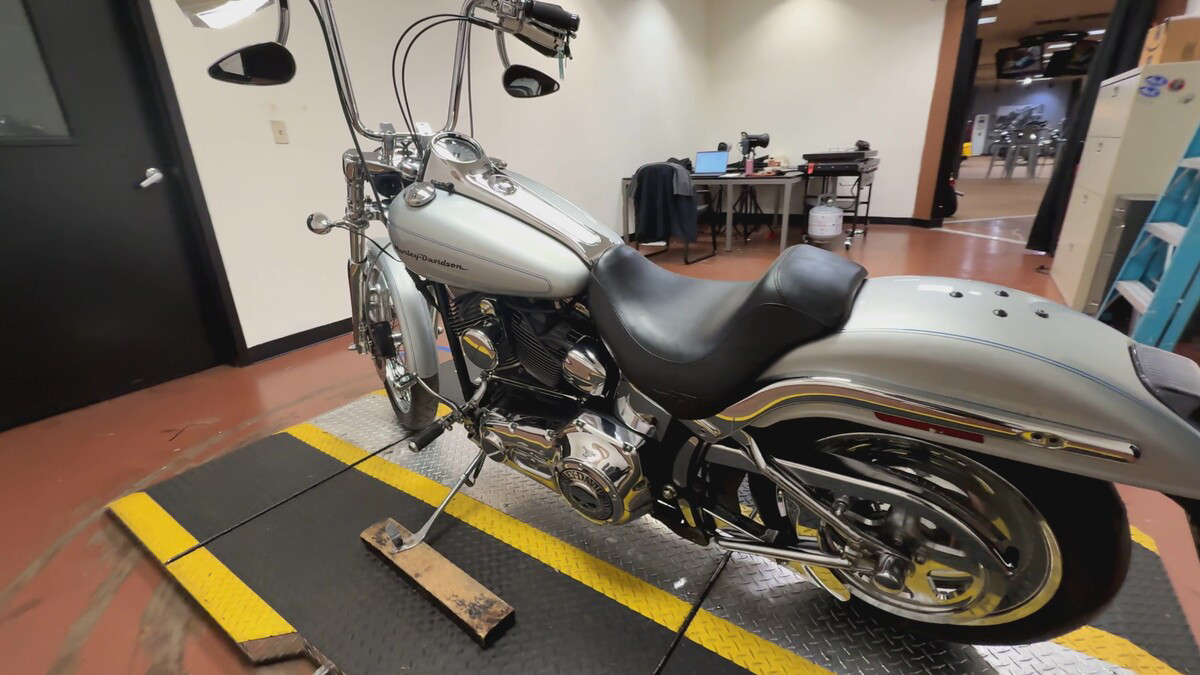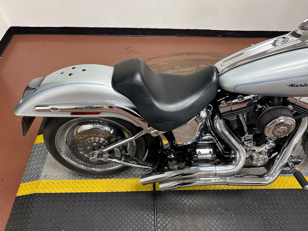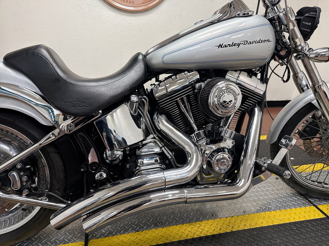 The Softail Deuce's exterior gleams in a striking silver finish, perfectly complementing its sleek lines and bold design. This used motorcycle stands out with its unmistakable Harley-Davidson aura, embodying the timeless American motorcycle spirit.