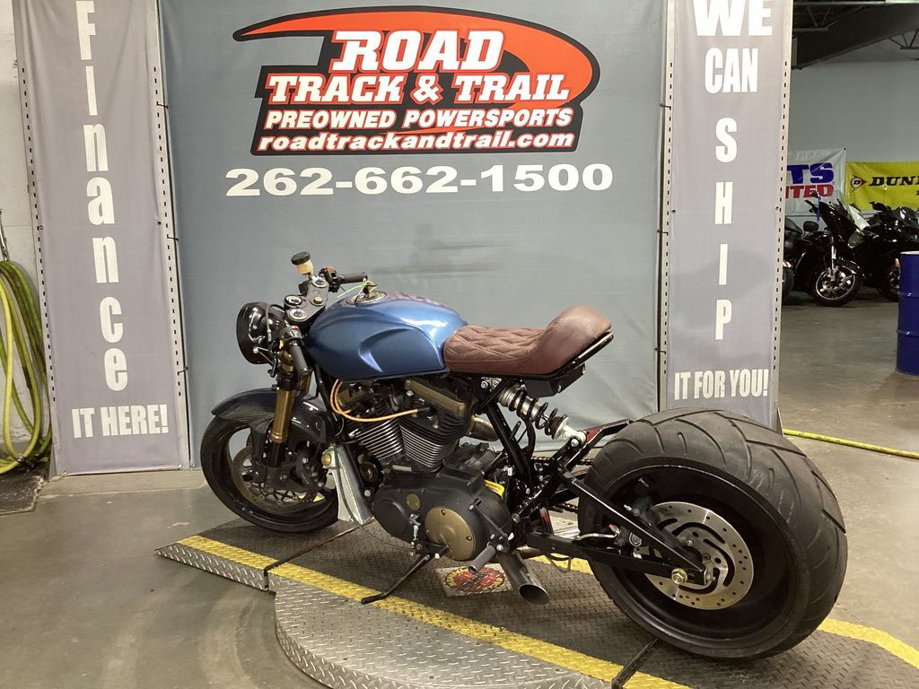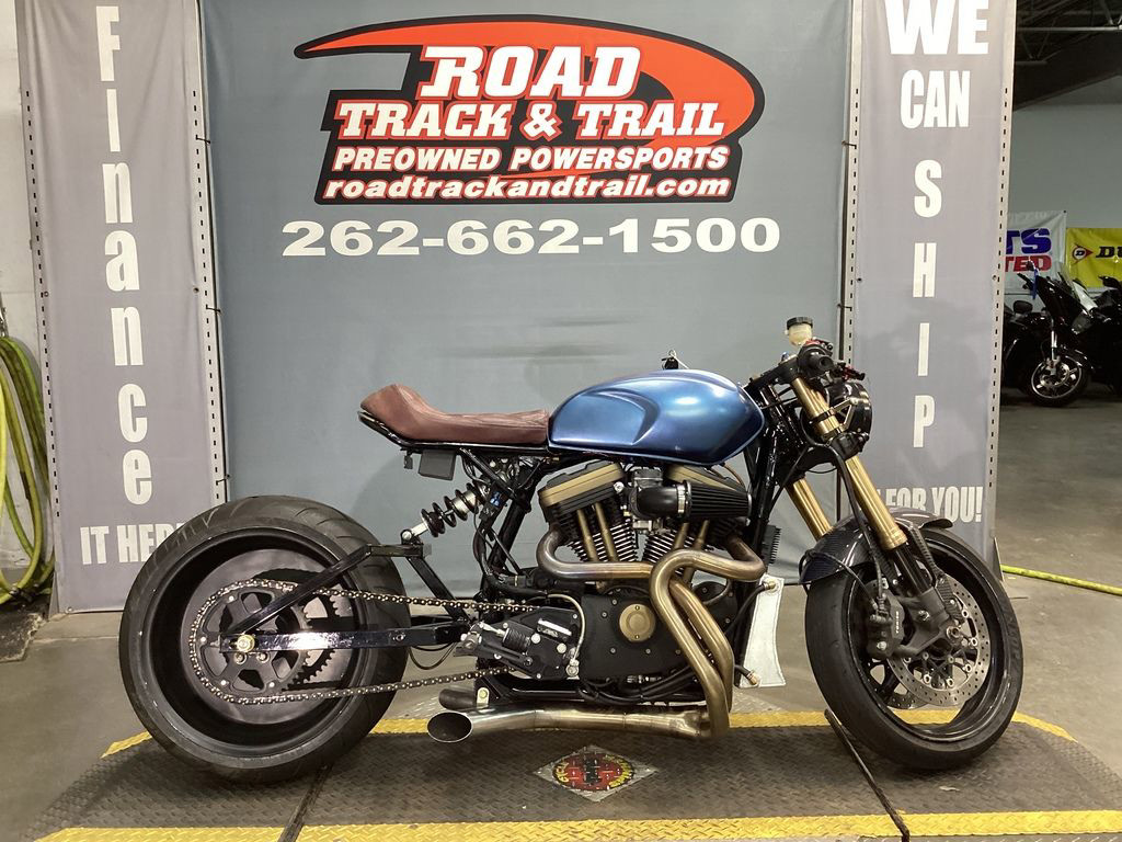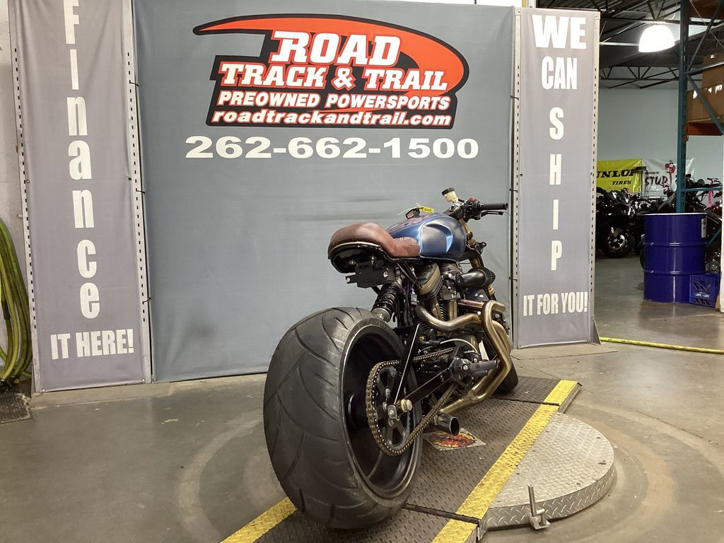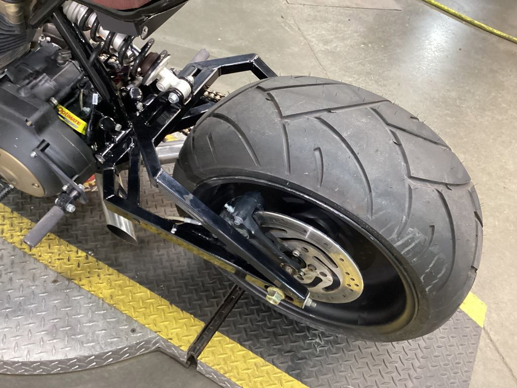 FULL CUSTOM BUILD BIKE! HAMMER PERFORMANCE BIG BORE KIT, CHAIN DRIVE CONVERSION, CUSTOM BUILT SWINGARM WITH 240 SERIES FAT TIRE KIT (NEW REAR TIRE), CUSTOM 2 INTO 1 INTO 2 EXHAUST, UPGRADED HIGH FLOW INTAKE, CUSTOM CHIN SPOILER STYLE OIL TANK, TC BROS BILLET FOOT CONTROLS, PEGS, AND BRAKE PEDAL, CUSTOM GAS TANK, SUZUKI GSX-R INVERTED FORK FRONT END AND TRIPLE TREES, CARBON FIBER FRONT FENDER, SUZUKI CLIP ON BARS AND HAND CONTROLS, MZS CLICKER BRAKE LEVER, ELITE MOTOTECH CLUTCH LEVER AND PERCH, UPGRADED GRIPS, MOTO GADGET SPEEDOMETER (NO ODOMETER, SO MILEAGE IS UNKNOWN), LED HEADLIGHT WITH BILLET MOUNTS, LED MINI FRONT SIGNALS, LED TAILLIGHT STRIP, CUSTOM QUILTED SOLO SEAT, AND MORE! COOL ONE OFF CUSTOM BUILT SPORTSTER! RUNS AND RIDES GREAT! *SOLD AS IS DUE TO ALL THE MODIFICATIONS*
