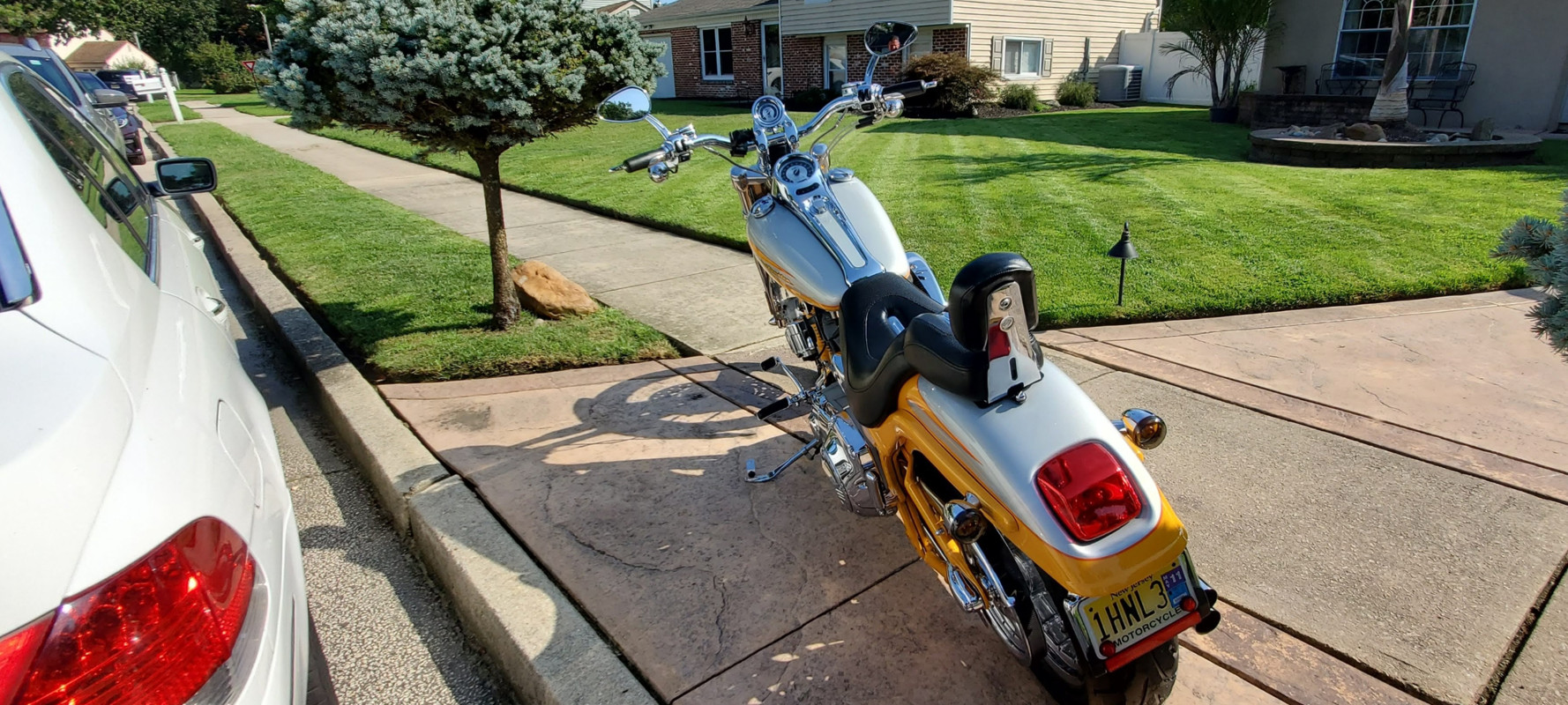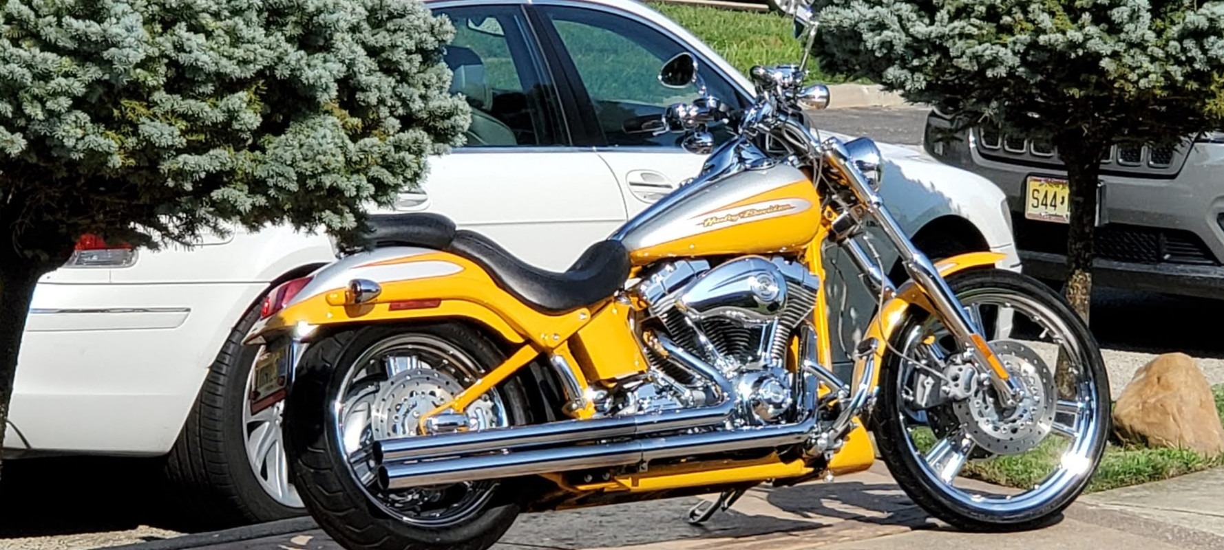 Long shot straight Vance & Hines pipes. LOUD. Alarm & key fob.. multi color lights throughout frame ..