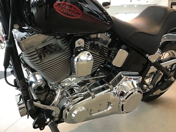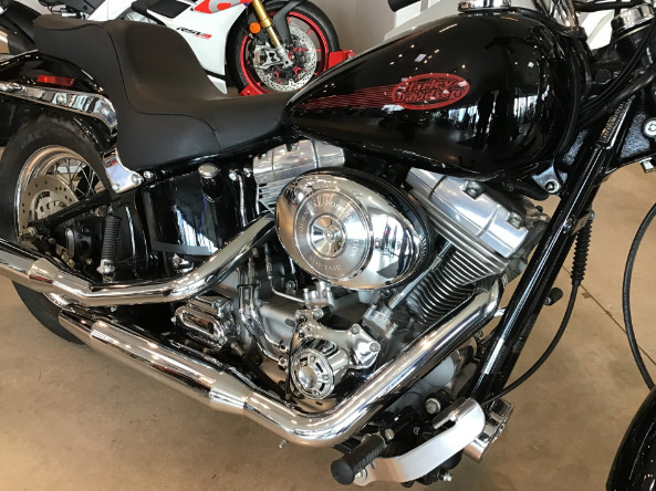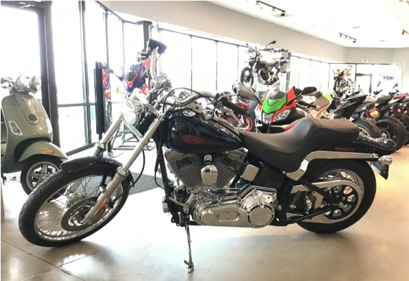 2004 Harley-Davidson® FXST - Softail® Standard in Vivid Black. The motorcycle is in excellent condition, with new tires. Comes with an additional rider Solo seat and chrome rear fender luggage rack. Financing, Shipping, and Extended Warranty are available.