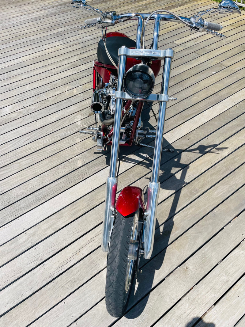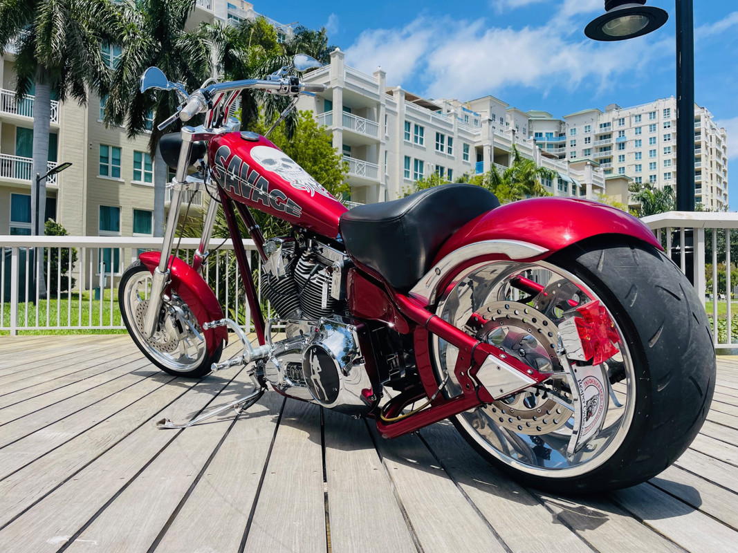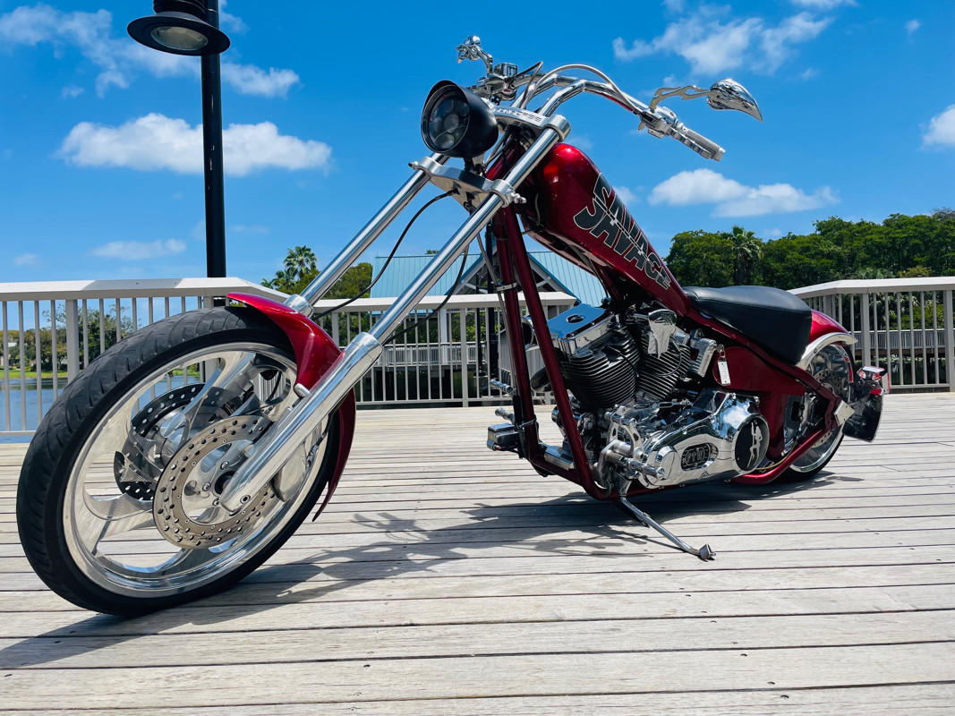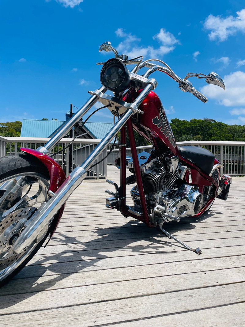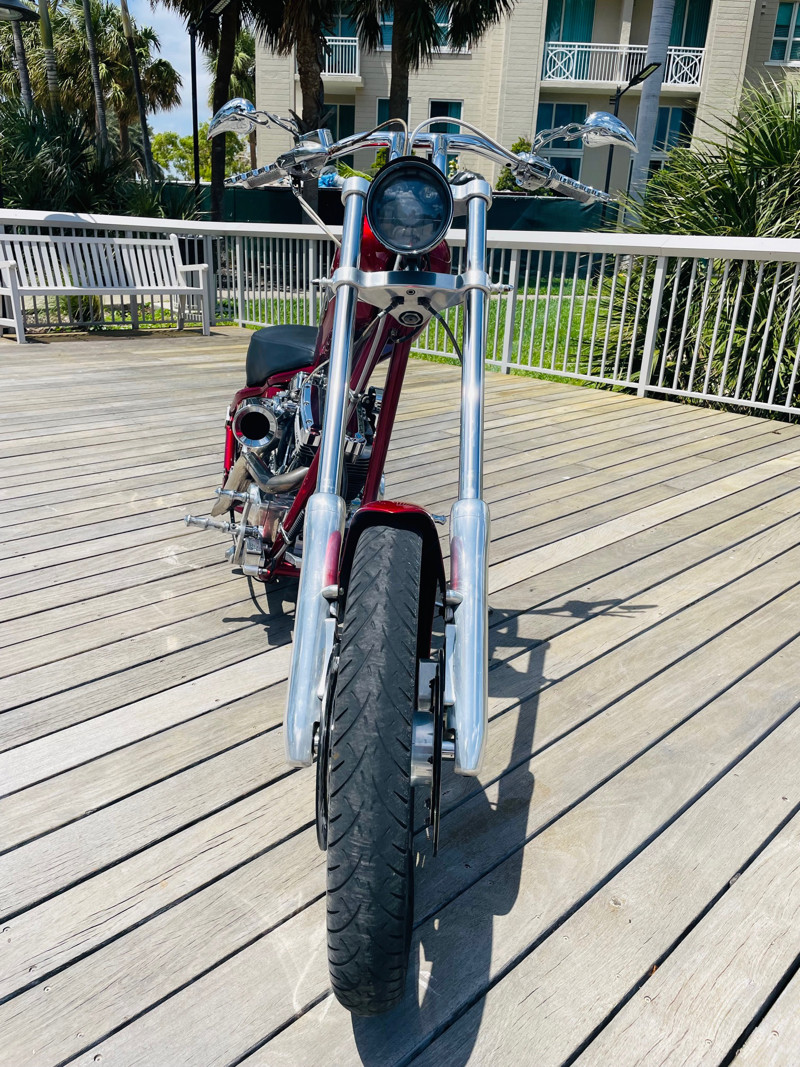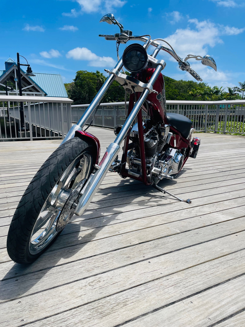 This is an extremely nice and well-built chopper. The bike is excellent in almost all aspects. Beautiful paint, super nice running 111ci motor, shifts easy through the 6-speed tranny. I had the bike up to 75Mph in no time and no wiggle, just asking for more.