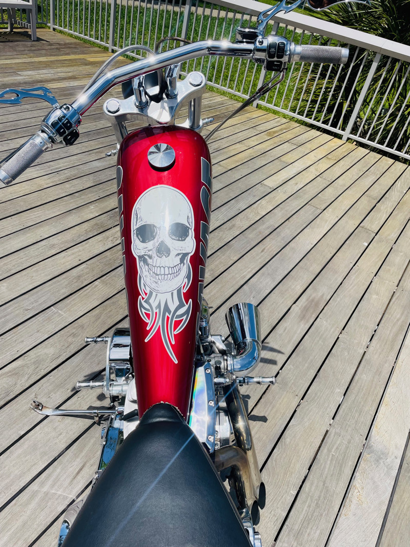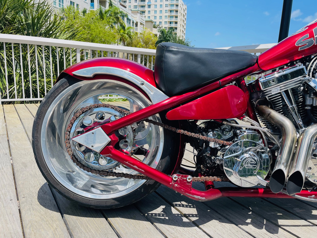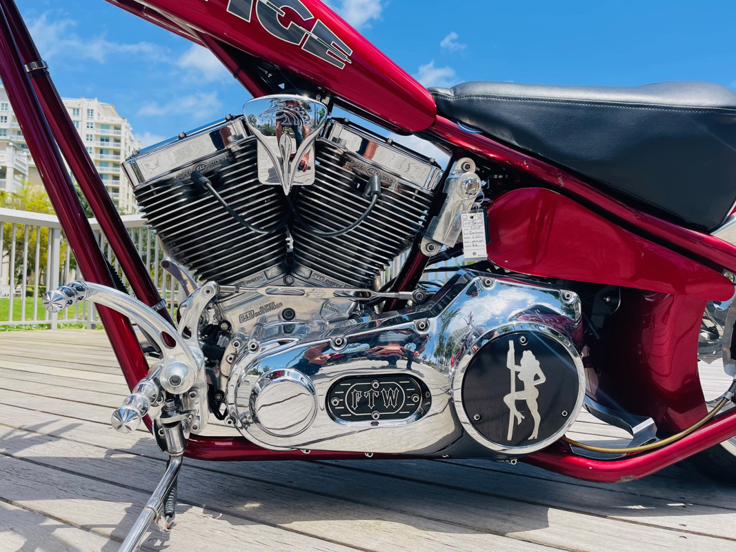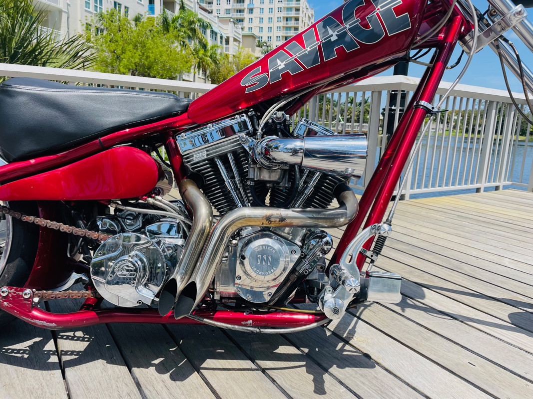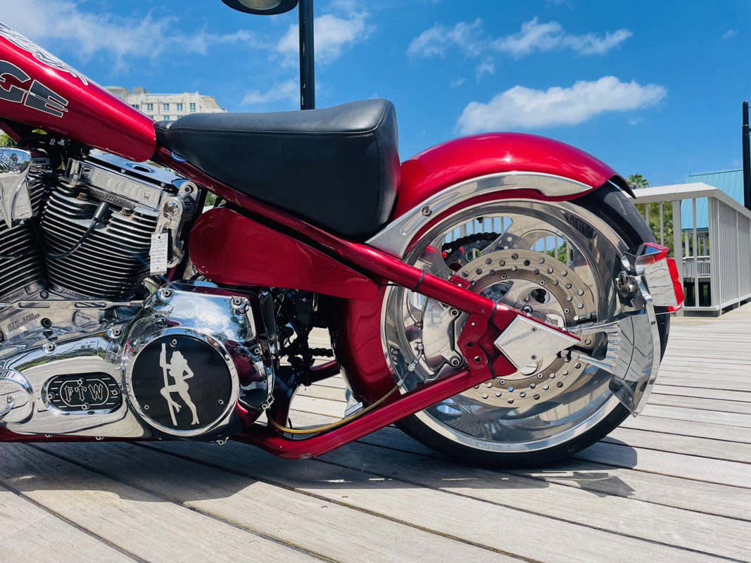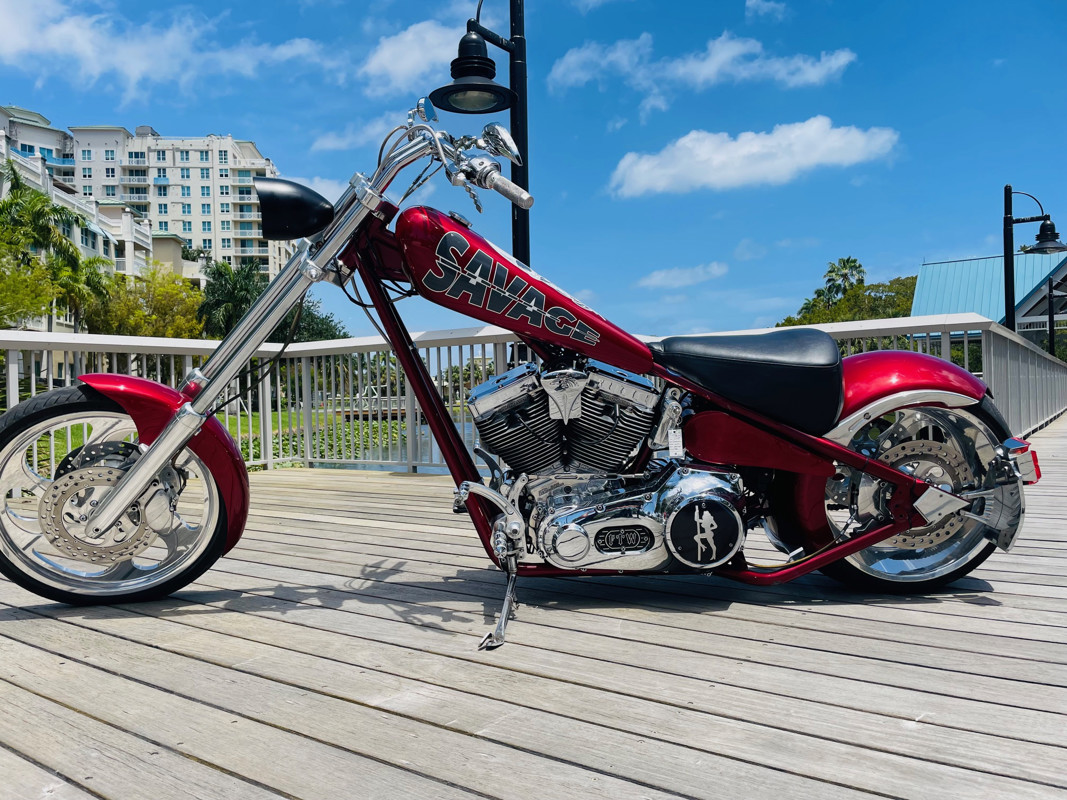 This is an extremely nice and well-built chopper. The bike is excellent in almost all aspects. Beautiful paint, super nice running 111ci motor, shifts easy through the 6-speed tranny. I had the bike up to 75Mph in no time and no wiggle, just asking for more.