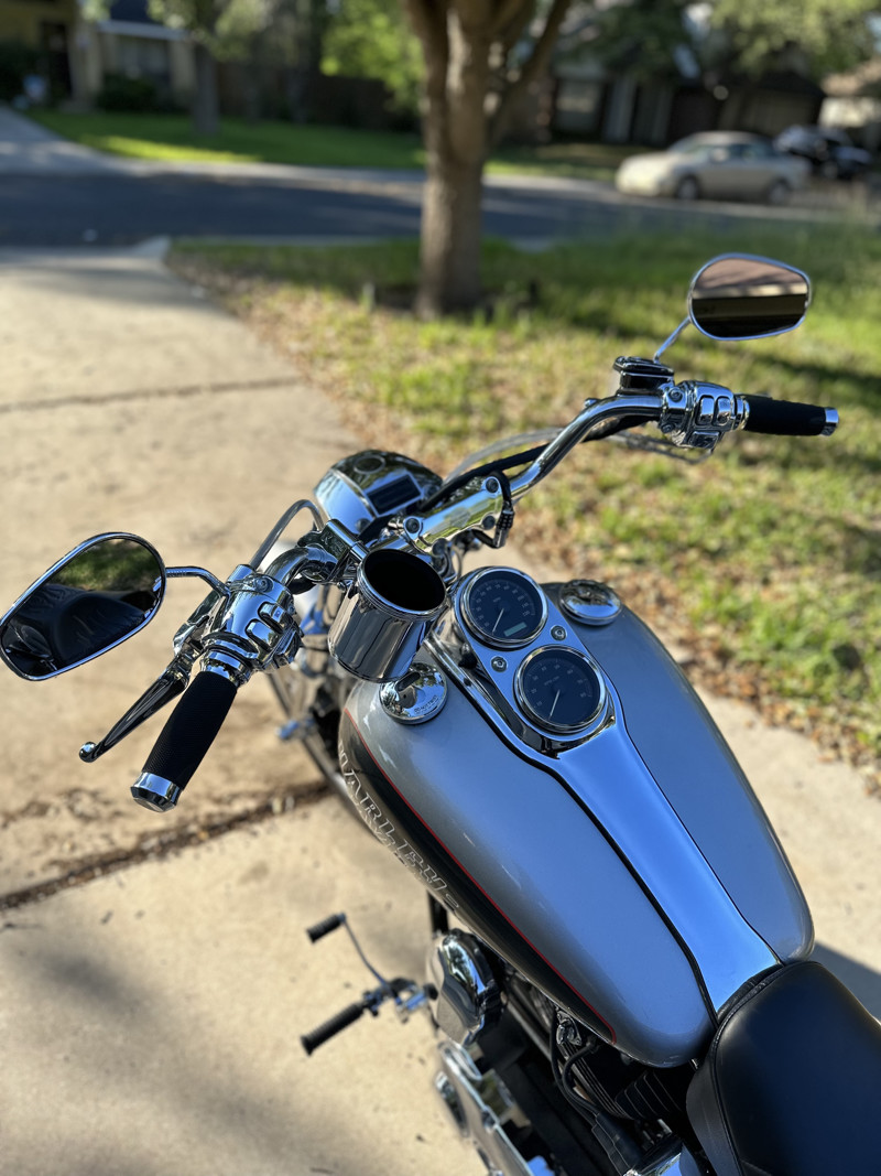 Lots of new chrome .. replaces lots of parts.. all parts from Harley original… fork sliders, controls, triple tree, chrome breaded throttle cables, and brake cable.. control levers, and more.