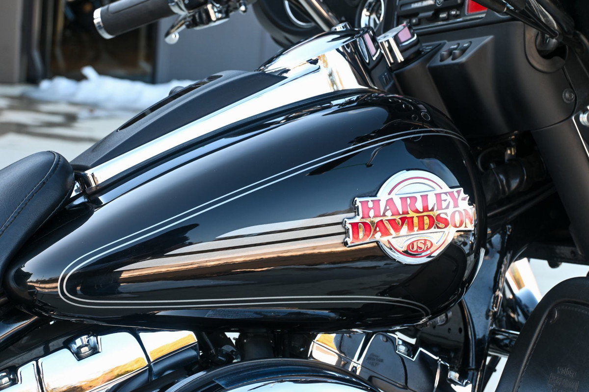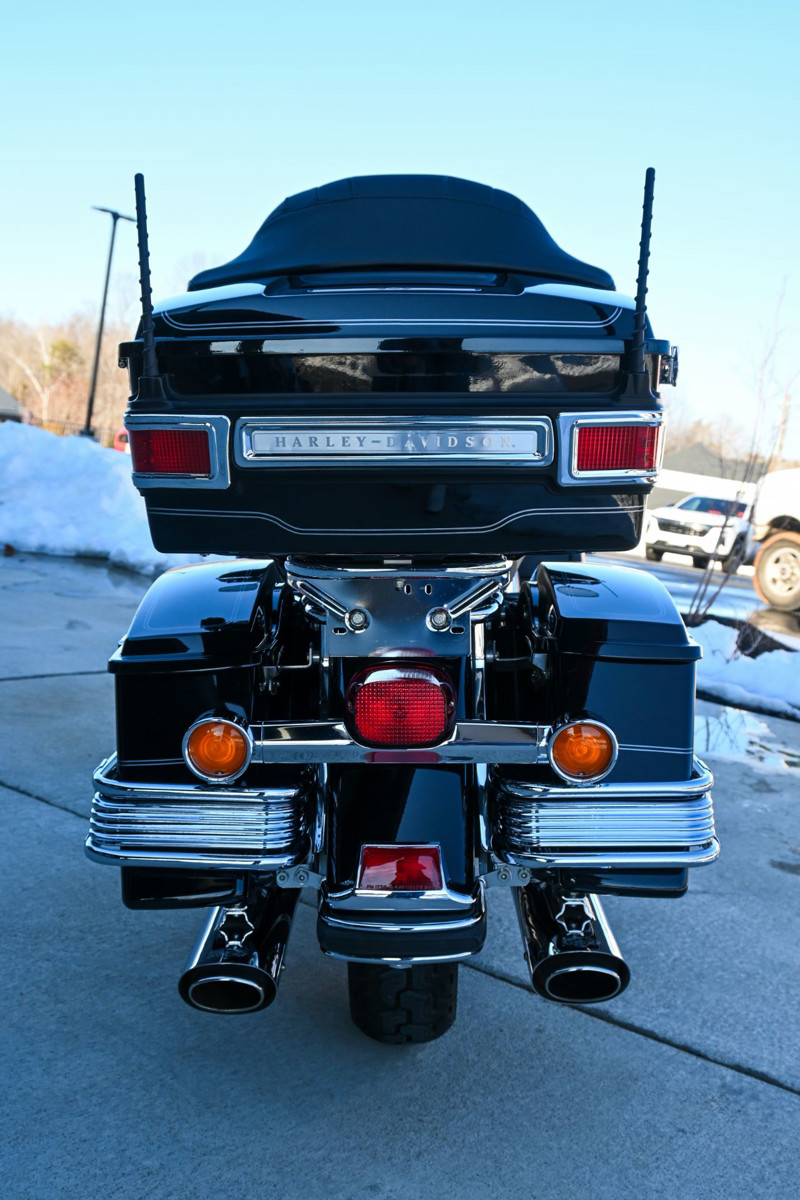 Throw a leg over an Ultra Classic® Electra Glide® touring bike and it’s like having one boot in the east, one in the west, and you are ruler of all lands in between. We start with a comfort-stitched saddle and passenger backrest, should you choose not to rule alone. Hard bags and King Tour-Pak®. 40-watts-per-channel, 4-speaker AM/FM/CD. Electronic passenger controls. Built-in C.B./voice-activated intercom. Cruise control. A new tank badge. In other words, the whole shebang. But even with all the goodies, this is still a Harley-Davidson® motorcycle at heart. Thumb the starter and the EFI Twin Cam 88® engine instantly declares its time-honored rumble. This year, the fairing lowers get a new venting system to keep the legs cool. So no matter where you are in the world, even the wind is at your command.
