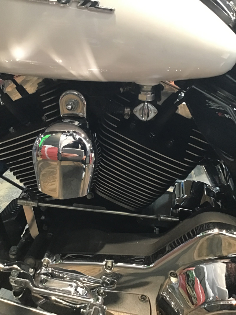 For 2005, the Road King® Custom model makes its second appearance, and one year has done nothing to mellow its in-your-face style and attitude. When this machine first hit the streets, the riding public couldn’t take its eyes off the minimalist swept-back chrome visor perched atop a set of pullback beach bars. Moving back, you’ll find this custom bagger is dressed up right. Clean leather bags with hidden supports. Slash-cut mufflers. Electro-formed, chromed metal fuel tank emblems. Big, clean front and rear fenders. Rounding off the sweet look are streamlined footboards, passenger pegs, brake pedal, cast and chromed slotted alloy wheels and a tank-mounted stretch chrome console. Though the Road King® Custom has much for the eye to see, it was built to see the country. You get a lowered, air-adjustable rear suspension, refined chassis, and the proven Twin Cam 88® engine, available in carb or EFI. For when you’re ready to stop looking, and start going.
