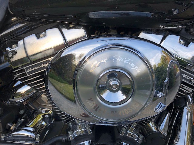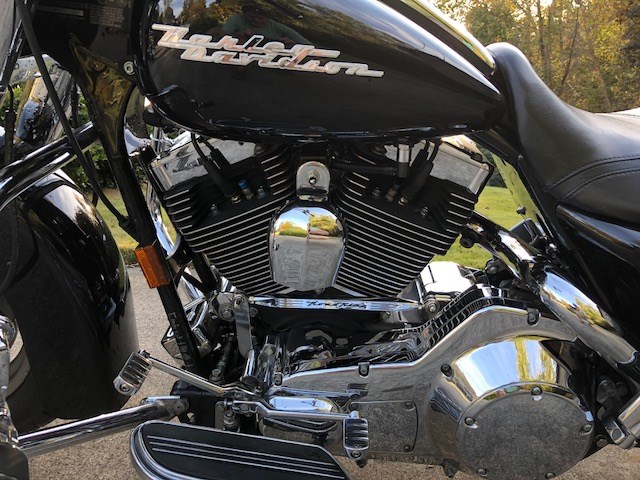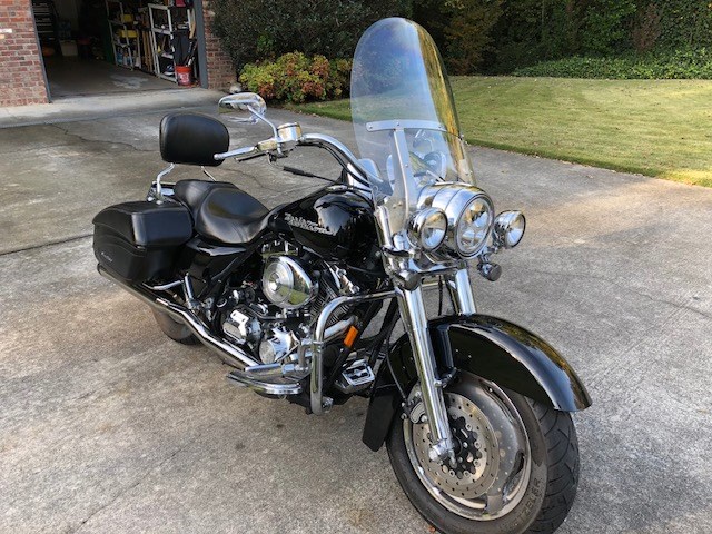 Gorgeous 2005 Black Road King Custom. Big bore motor, 95 cubic inch, 1550 cc's and 6 speed transmission. Screamin' Eagle heads and high performance cam. LED lights all around. Includes windshield and passenger backrest. This is a fantastic bike for a great price!