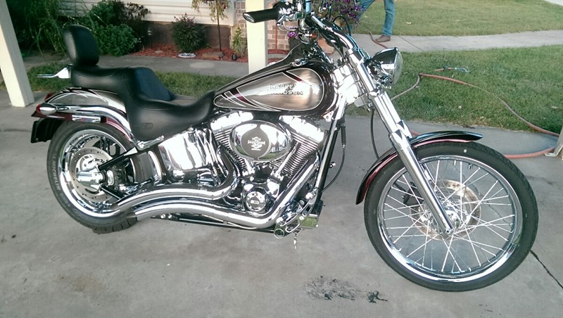Beautiful #4 of 200 2005 Softail Deuce!! Smooth radius front rim and Harley split 5 spoke rear mag. All billet aluminum accessories including triple tree nut covers, axle covers, gas cap, foreword controlls, thermometer and clock ( on handlebars) and all matching side covers. Screaming Eagle grips. Daymaker headlight and high flow air cleaner. Dynojet power Comander III and dyno tuned. Vance and Hines Big Radius exhaust. Quick detachable leather Deuce saddlebags that can be locked to bike. Larger Harley seat with gel pads inserted in front and back. Also comes with factory seat. Tall factory backrest... I am the second owner of this bike and recall hate to part ways but have two Harleys now and wife says one has to go. Bare metal in design is stunning!! Don't miss out on this beautiful and flawless Harley. Thank you, Mike!!