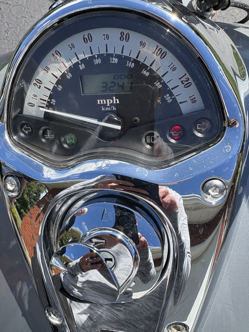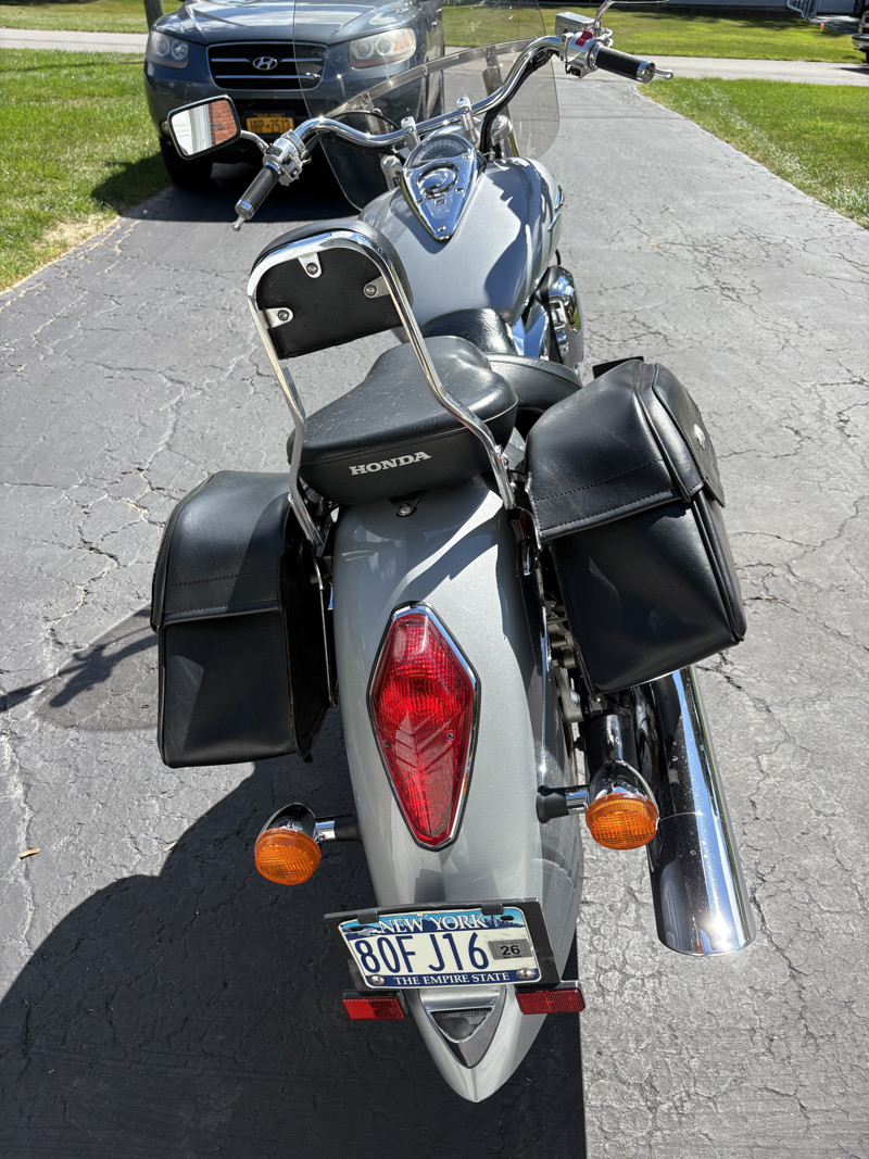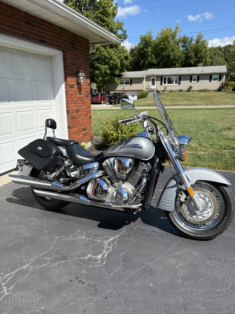 Silver, extremely well cared for. Excellent condition. Will include two helmets, men’s and women’s motorcycle jacket.