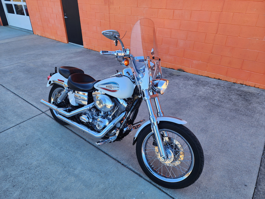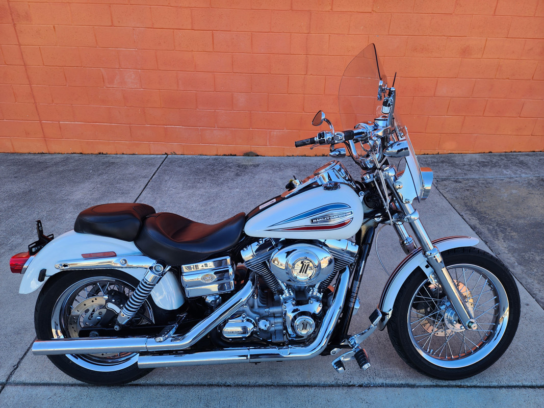 Descended from the original factory customs, the Dyna™ series lives at the crossroads of style and performance. Born of an undying urge to chase far-flung horizons. This year, the family gets a wheel-to-wheel redesign. One look and you see the machine is substantial in every detail. From the mass of the 49 mm raked forks to the muscular 160mm rubber in back. On top of the new tough look, you’ll notice performance upgrades, too. Beginning with a whole new gearbox. The all-new 6-speed Cruise Drive™ transmission is ready to kick its legs out on the open road. The clutch takes less effort to pull, making all six gears even more satisfying. A new frame, new 1" front and rear axles, and a wide swingarm make handling tighter than ever. Also for 2006, you’ll find all Dyna 1450cc Big Twins equipped with consistently smooth-operating Electronic Fuel Injection (EFI) standard for the first time ever. You might find it hard to believe, but we did all this without compromising affordability. No one but Harley-Davidson® could ever take the factory custom to a place this good. When Willie G. Davidson’s Super Glide® rolled off the line in 1971, you could see it was different. Fat rear tire beneath a boattail fender. Narrow front end. Big Twin engine in the center. Gleaming red, white and blue paint on a one-of-a-kind shape. Thirty-five years later, The Motor Company announces the Anniversary Edition of the Super Glide®. Wide handlebars Fat Bob™ fuel tank with dual caps. Loads of chrome parts. The famed #1 logo emblazoned on the tank, just as it was on the first model. Even the paint scheme does the original machine proud. Each of these limited-production bikes is individually numbered. Don’t wait another 35 years to get yours.