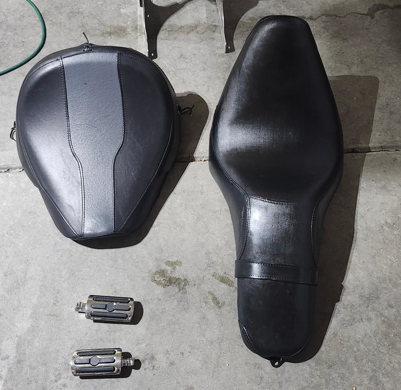 Great running bike. New Chrome pipes. Comes with 2 extra different styled seats. Priced to sell. Also includes 2 sets of saddlebags (not pictured)