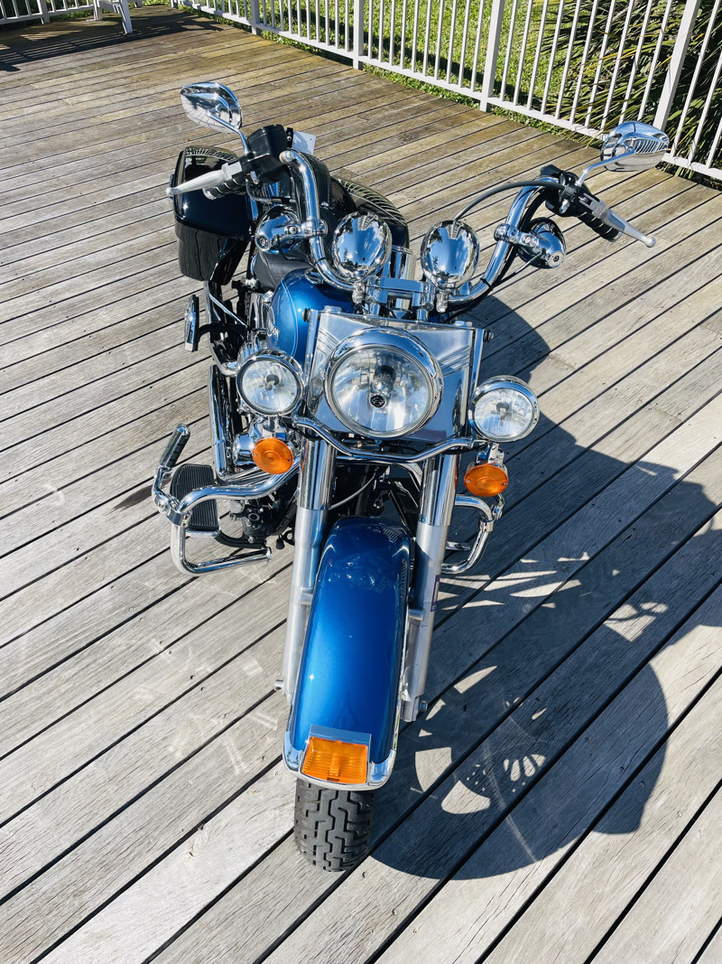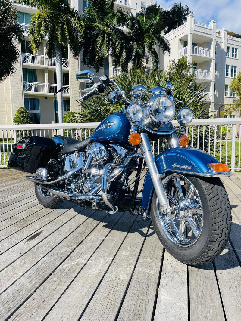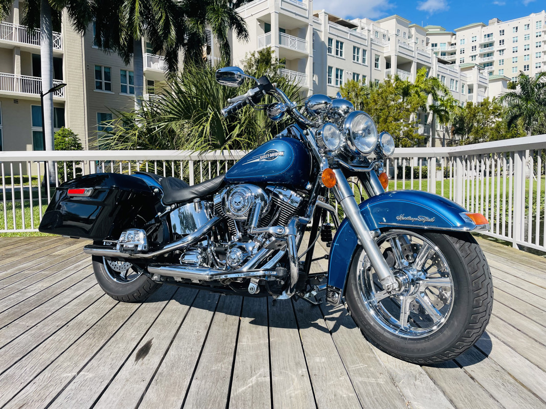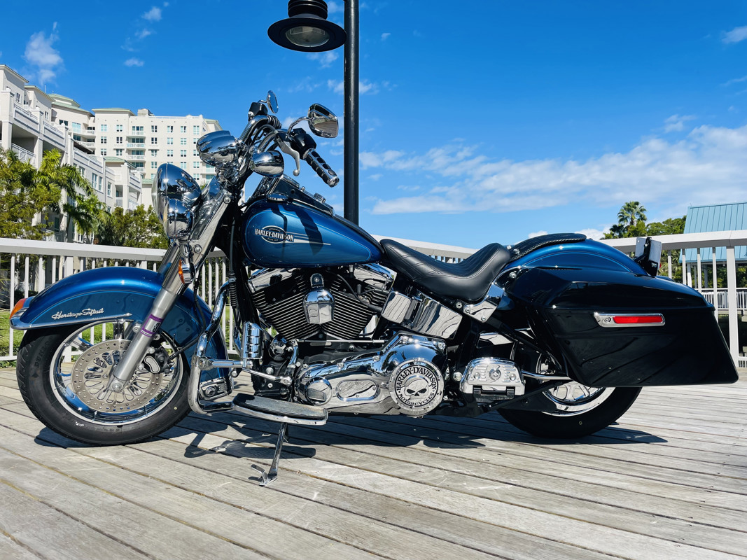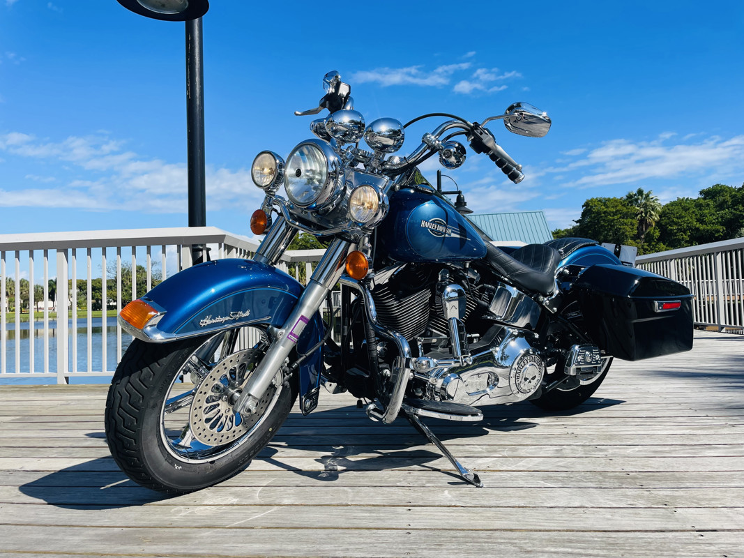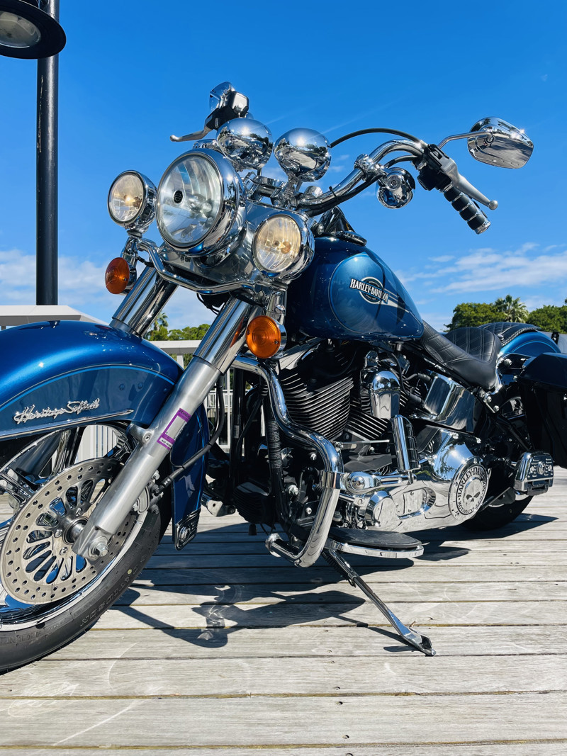 Softail models were introduced in 1984 with a newly patented design from one of the Harley engineers. The hidden suspension allows clean lines and over the years the design has been improved. The Heritage line is a timeless classic look that no matter when you look at it just does not get old. Wide swooped fenders and studded bags, big seat and comfort all around makes this bike a looker all the time.