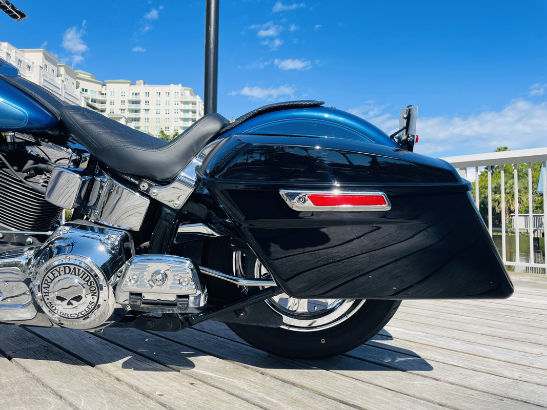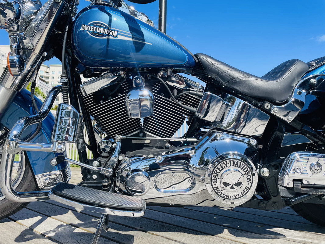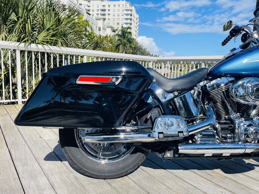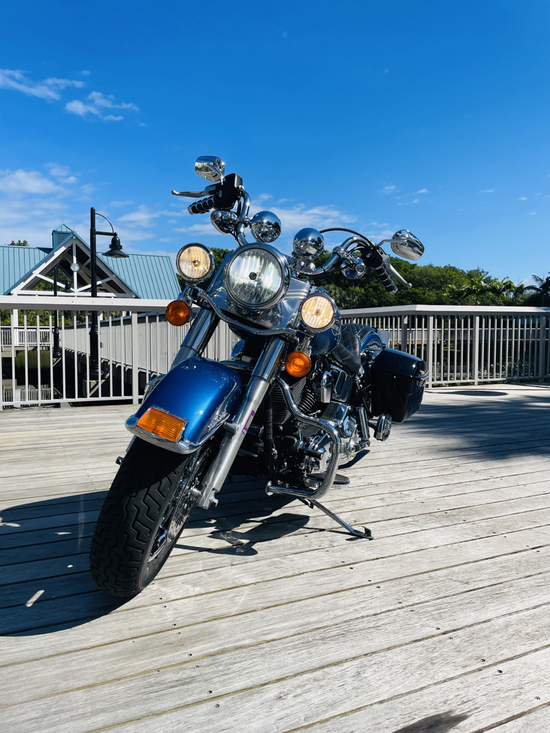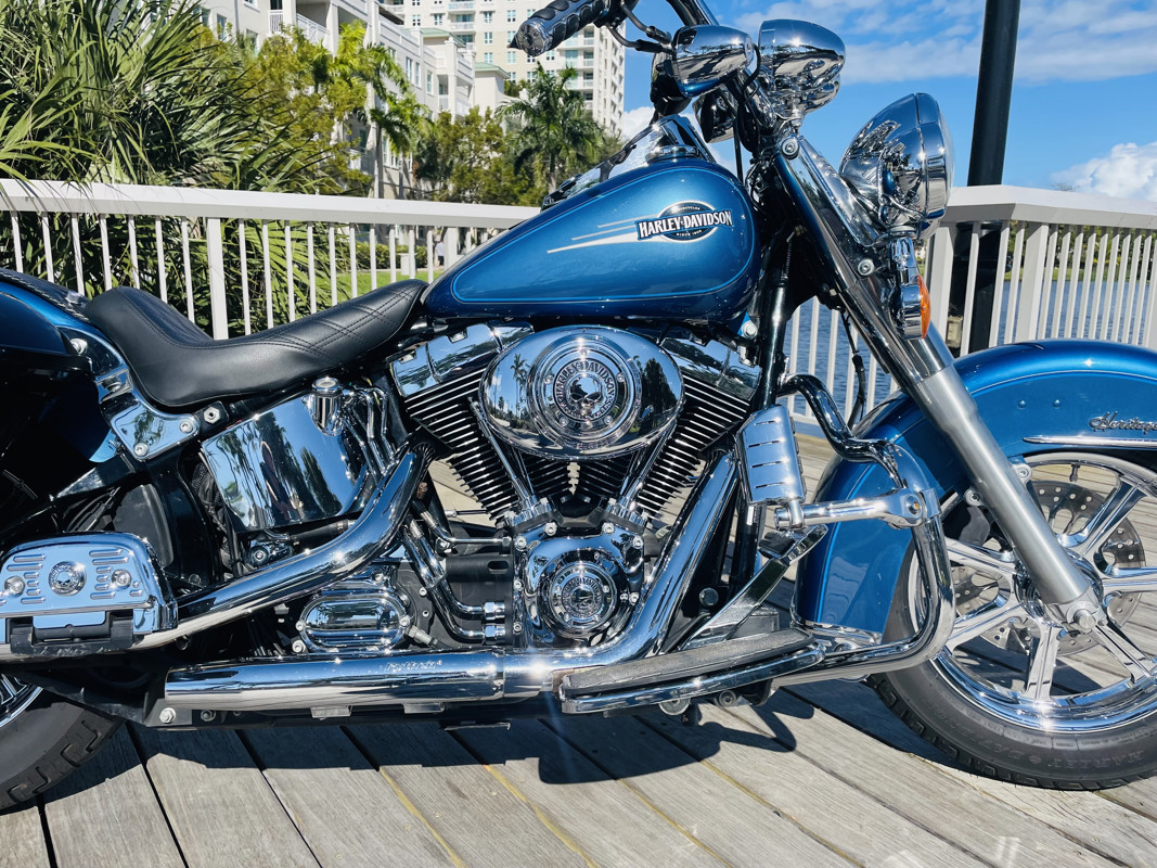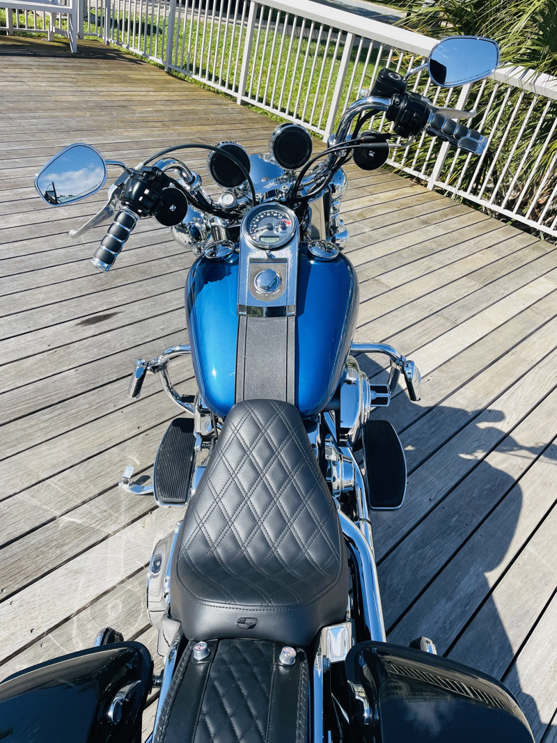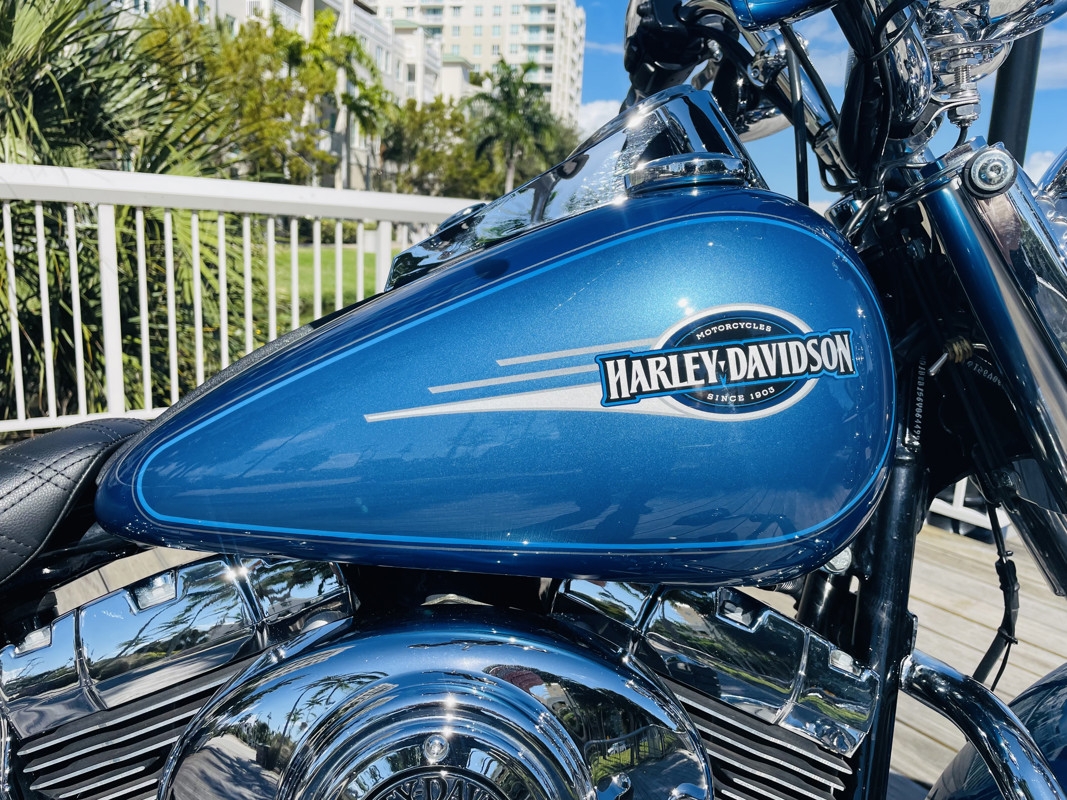 Softail models were introduced in 1984 with a newly patented design from one of the Harley engineers. The hidden suspension allows clean lines and over the years the design has been improved. The Heritage line is a timeless classic look that no matter when you look at it just does not get old. Wide swooped fenders and studded bags, big seat and comfort all around makes this bike a looker all the time.