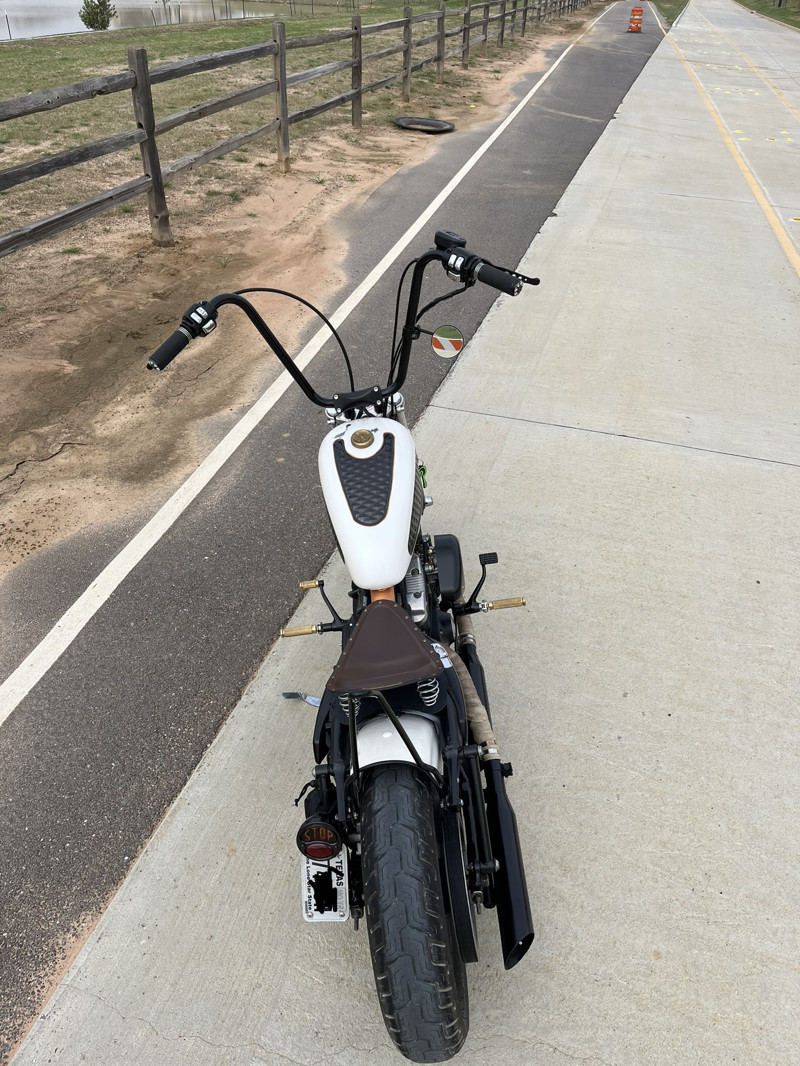 2006 Sportster recently turned into a bobber with all new parts. She has a 1200 screaming eagle stage 4 motor, new scorpion clutch, new front tire and springs, new lights, new bars, new seat, new tank, new plugs, wires, Petcock, rebuilt S&S carb, new grips, new pegs, new cables, and accessories. She has been chopped up and made to look patina and old school.