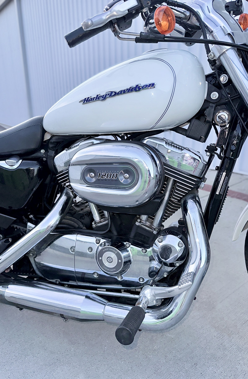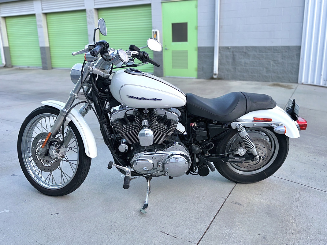 Beautiful pearl white Harley-Davidson Sportster 1200 motorcycle. Beautiful in body and in look, this beast floors with power. In gorgeous condition. Regularly ran and maintained. Mileage at time of listing: 81,400 mi.
