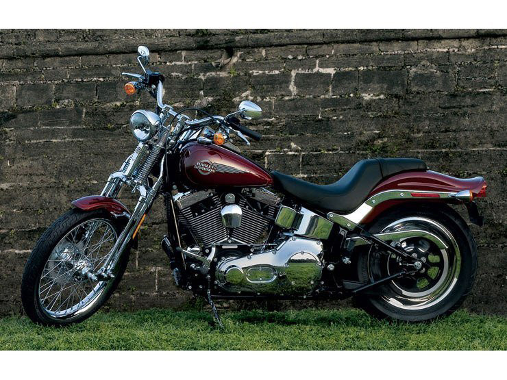 In the saddle of a Harley-Davidson® Softail®, no road is ever lonely. Sunlight breaks through treetops to dance on chromed steel. The wind offers its constant stream of praise. And the world unfolds before you with open arms. Maybe it’s because nothing else on the road compares with the timeless hardtail styling ... and nothing else feels like a Twin Cam 88B™ power mill rigid-mounted to the frame. Counterbalancing takes care of all but the good vibrations. You and the motorcycle become one, united by an unbreakable bond. Then you feel the hidden rear suspension smooth out the ride with a full 4" of travel. There’s no denying you’re in the saddle of a rolling masterpiece. This year, the Softail family of custom motorcycles welcomes its latest member. We invite you to turn the page and take a gander at the clean lines of the new Heritage Softail®. Additionally, all new bobtail models get a shot of adrenaline in the hindquarters — a brawny, road-hugging 200mm tire under a new wider fender. More rubber to stick to the pavement. More style to keep the eyes glued.