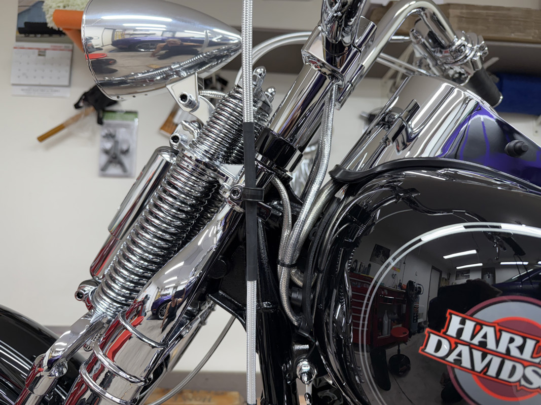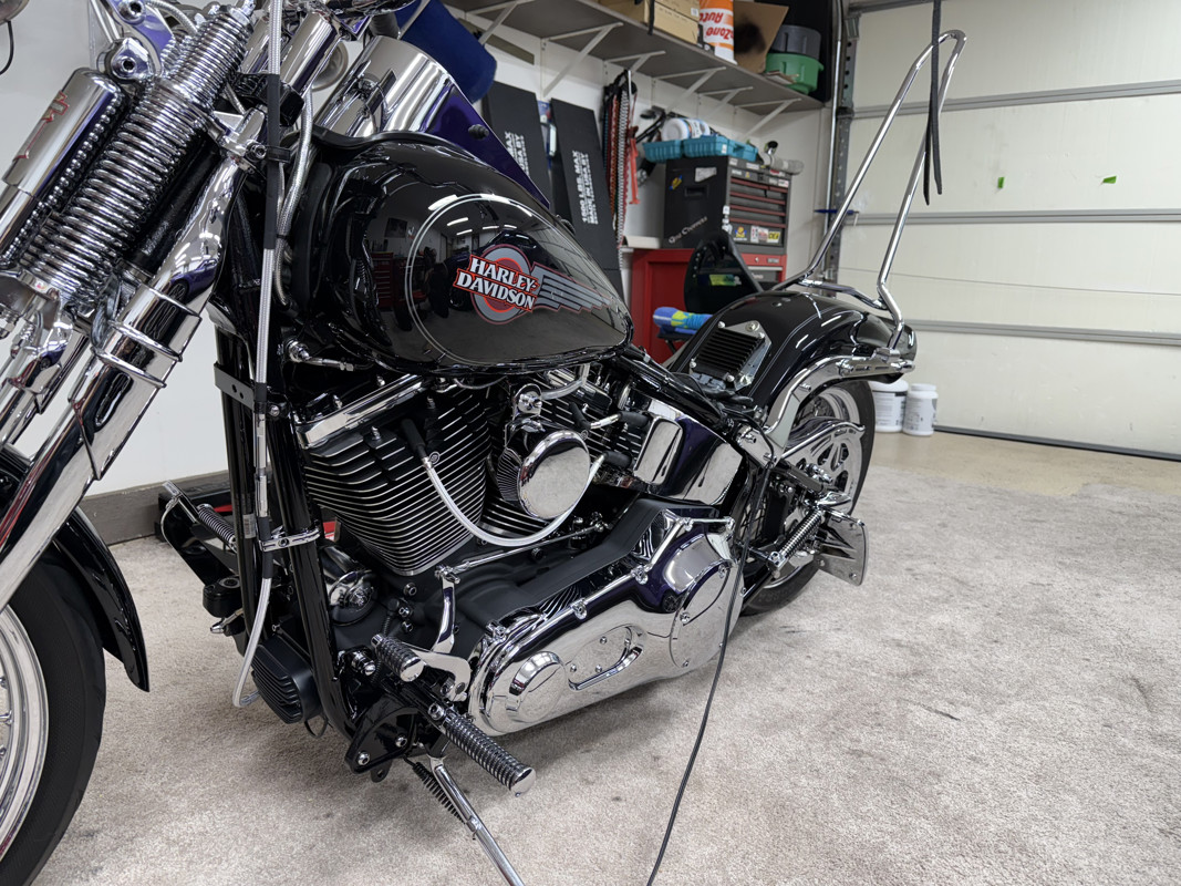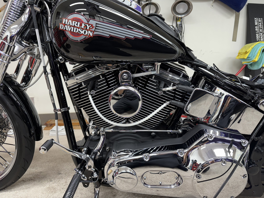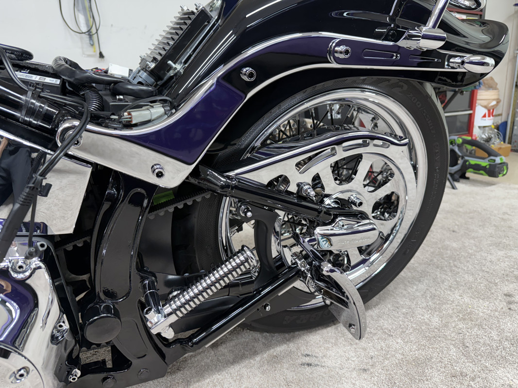 One owner, pampered and taken care of to the highest standards. Ride Wright Wheels, Exotic brand polished billet aluminum pan head rocker boxes with billet support plates and rocker lockers by Vulcan Engineering. 4 1/2 degree raked fork stem from Vulcan Engineering, 32 degree fork angle. Custom mirrors with built in turn signals, Dakota Digital Speedometer, flush mount gas caps with Blue LED lighting for fuel gauge, progressive adjustable rear shocks, custom low profile rear turn signals, super clean look, all hardware on bike is chrome, every bolt, nut, washer, and lock washer. All lines are stainless steel braid. Side mounted license plate with brake light, custom LED rear brake light, brand new polished brake rotors and new pads and fluid. All fluids are new, just changed and serviced. Custom seat by Le Pera, polished brake calipers, custom sissy bars by Ginz Choppers, 2 of them, Samson Big Guns Exhaust, Outlaws model, Wrapped professionally. Custom air cleaner by Arlen Ness, handmade custom grips, brand new fat bars and risers by Wild Ones, custom billet head light, chrome rear pulley, the best of everything is on this bike, as I had planned on keeping her my whole life. I love my bike and have taken care of it as such. I’m 68 now, and medical stuff won’t allow me to ride anymore. The bike lives in a finished garage with heat and A/C, it’s been spoiled to the max. Whoever buys this bike is one lucky person. You won’t find a nicer, better taken care of Springer anywhere. 2006 is the first Springer ever to come with the 200 mm rear tire, and it’s also the last, this is the last year of the FXSTS/I. There is no such model in 2007 or later. One of a kind, produced for one year only, 2006. Only CVO’s after that, they’re not the same. Has Dynojet power commander 3. New battery as well. Custom shorty rear belt guard, custom pushrod covers, bike is immaculate, living in a rust free, winter free environment its whole life. Arizona! Bike also has a H-D alarm with pager that you can carry.