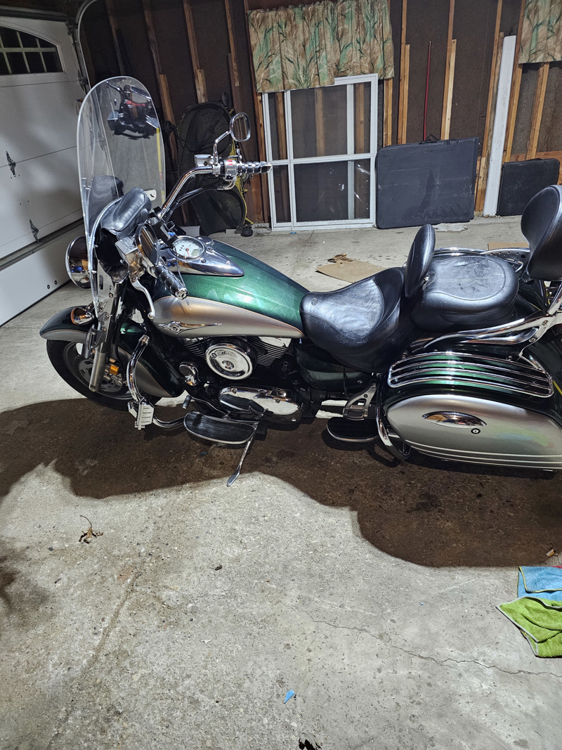 Used 2006 KAWASAKI VULCAN 1600 NOMAD for sale. This bike has the 1600 efi engine with Vance & Hines pipes and Cobra FI2000 Tuner. this thing has a 4 inch rise and 2 inch pullback riser, mustang seat with rider backrest, hidden trailer hitch, and 2 year old lithium battery. its had head bearing and fork seal done in 2023 with about 4000 miles since and tires have about the same miles. The right bag has some scuffs on it that were there since I bought it. Reason for selling. I found a different bike so I need the room