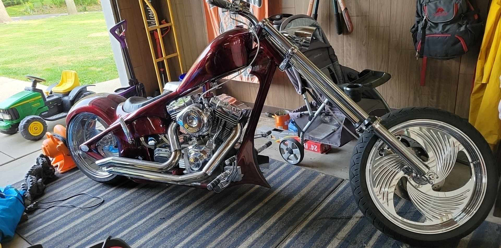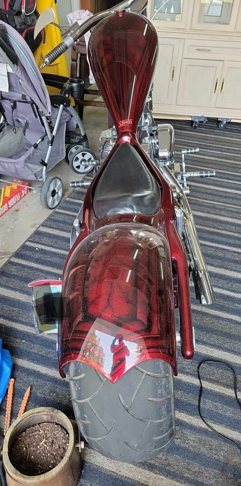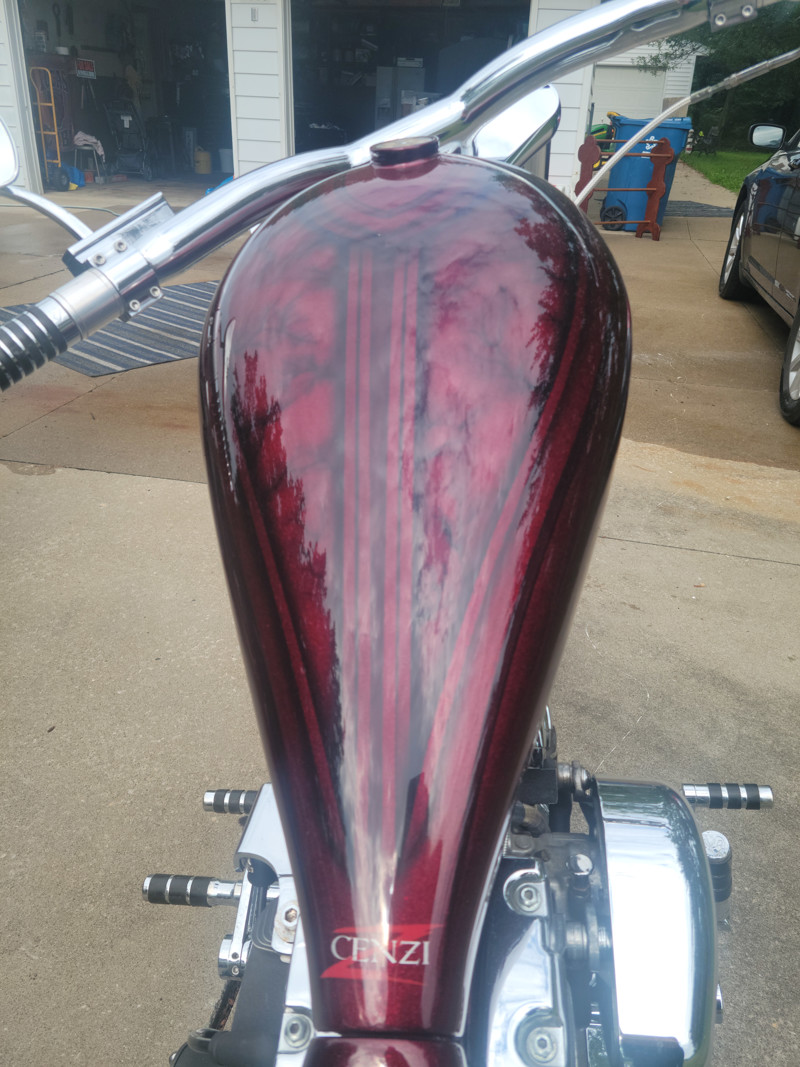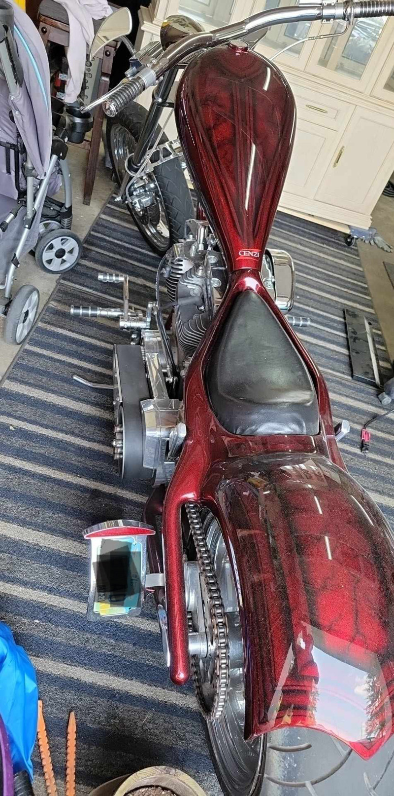 Cenzi custom chopper, 103 s and s motor, elderbrock heads, baker 6 speed transmission, custom paint, handmade gas tank by Jesse Janes, too much to list